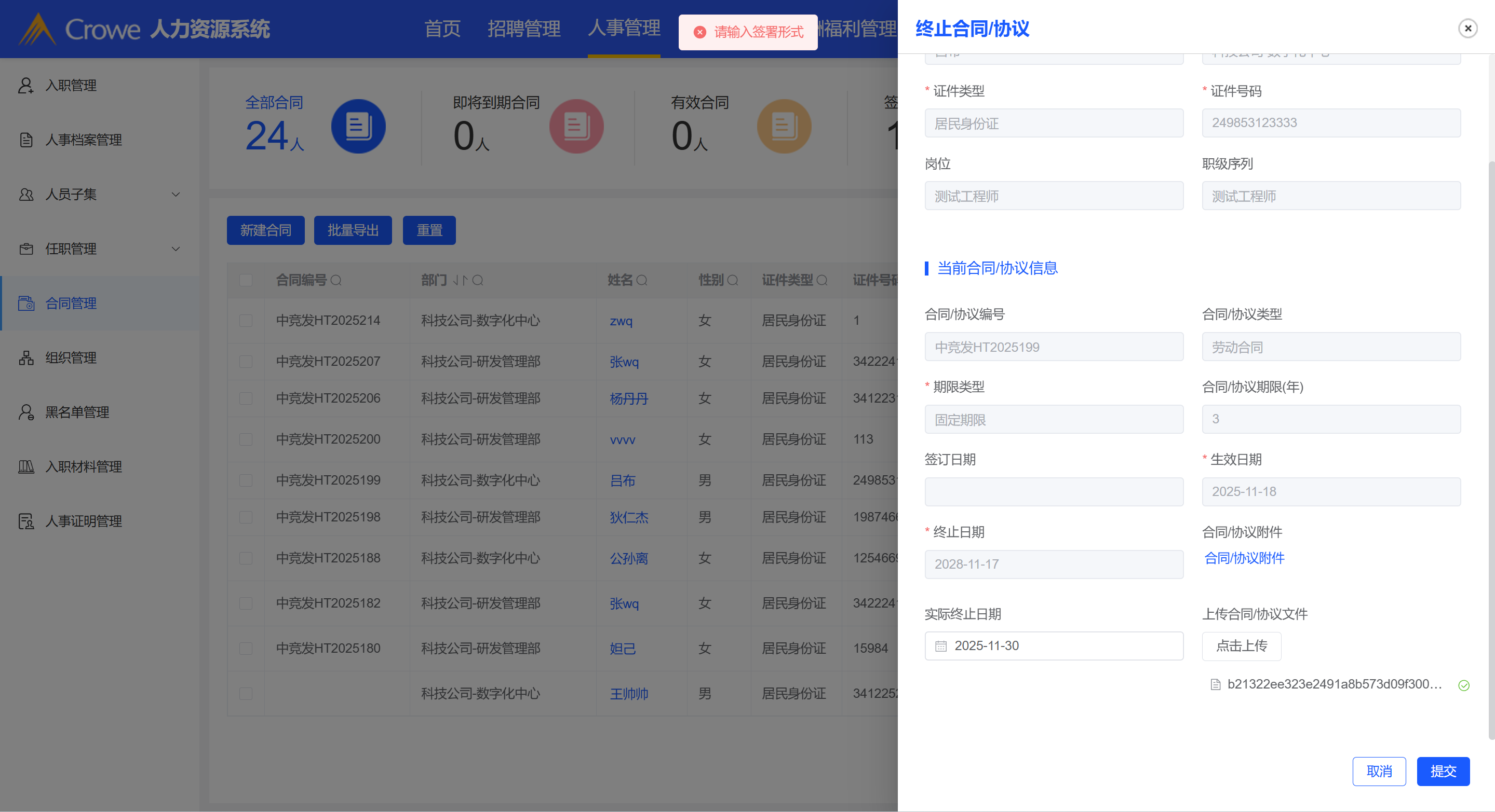 终止合同表单提交提示缺少签署形式,表单没有这个字段