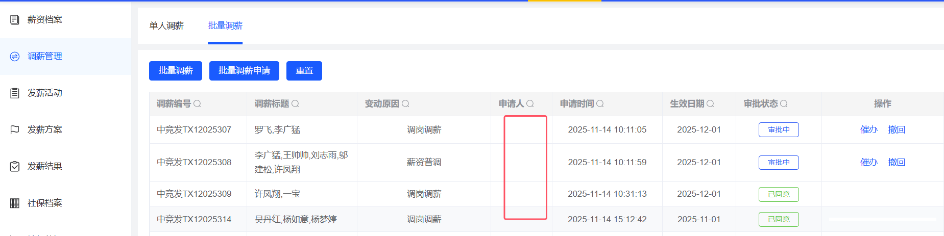 批量调薪-申请人列未显示数据