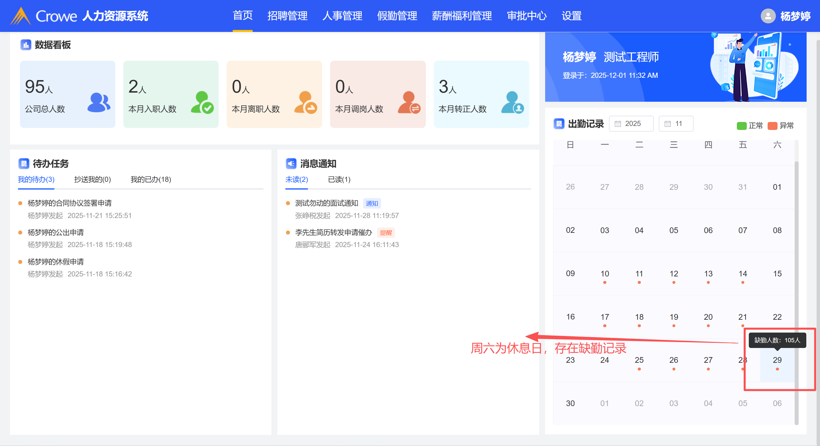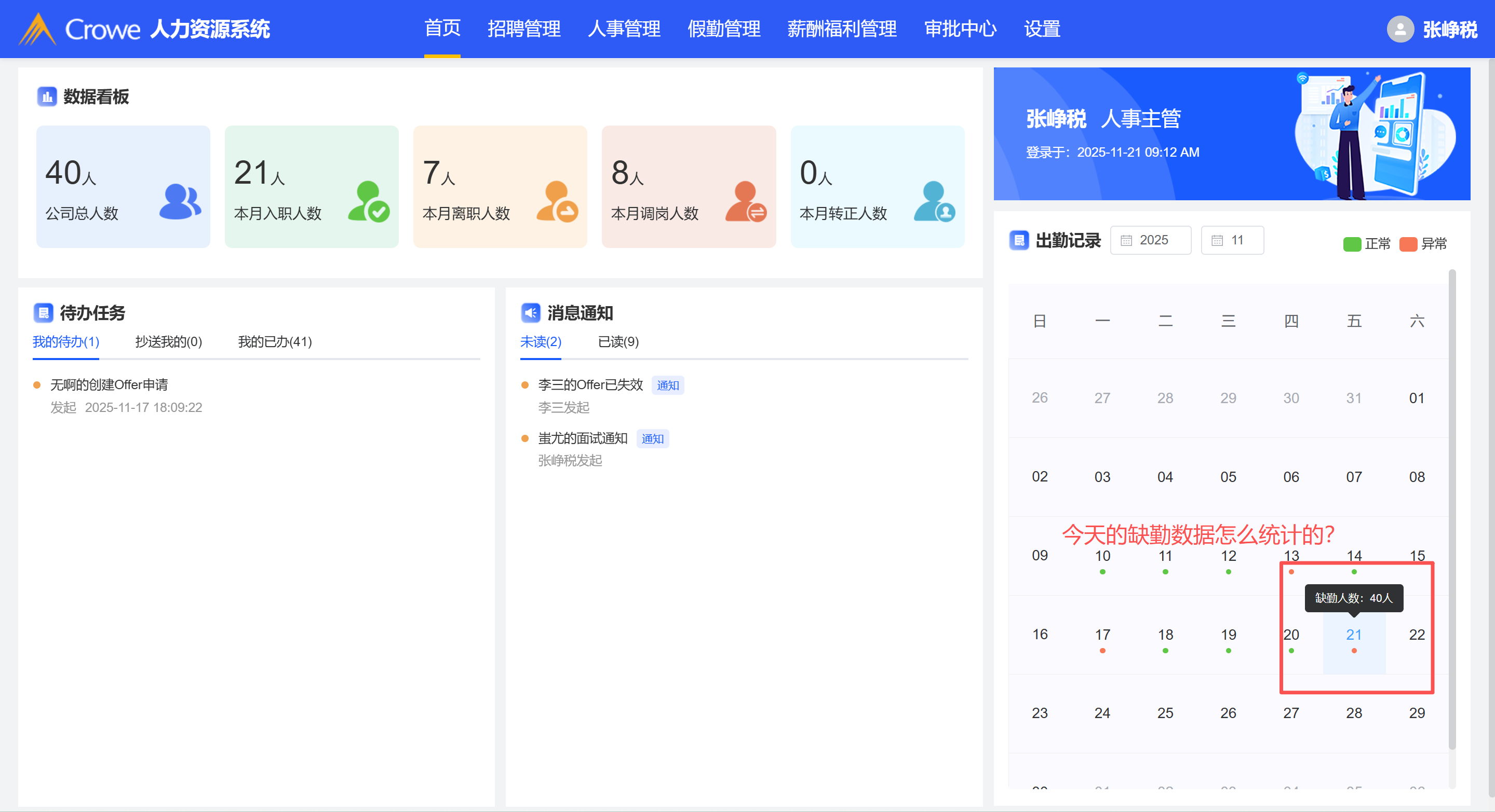 已关闭HR首页出勤数据第二天定时更新,当天无数据显示