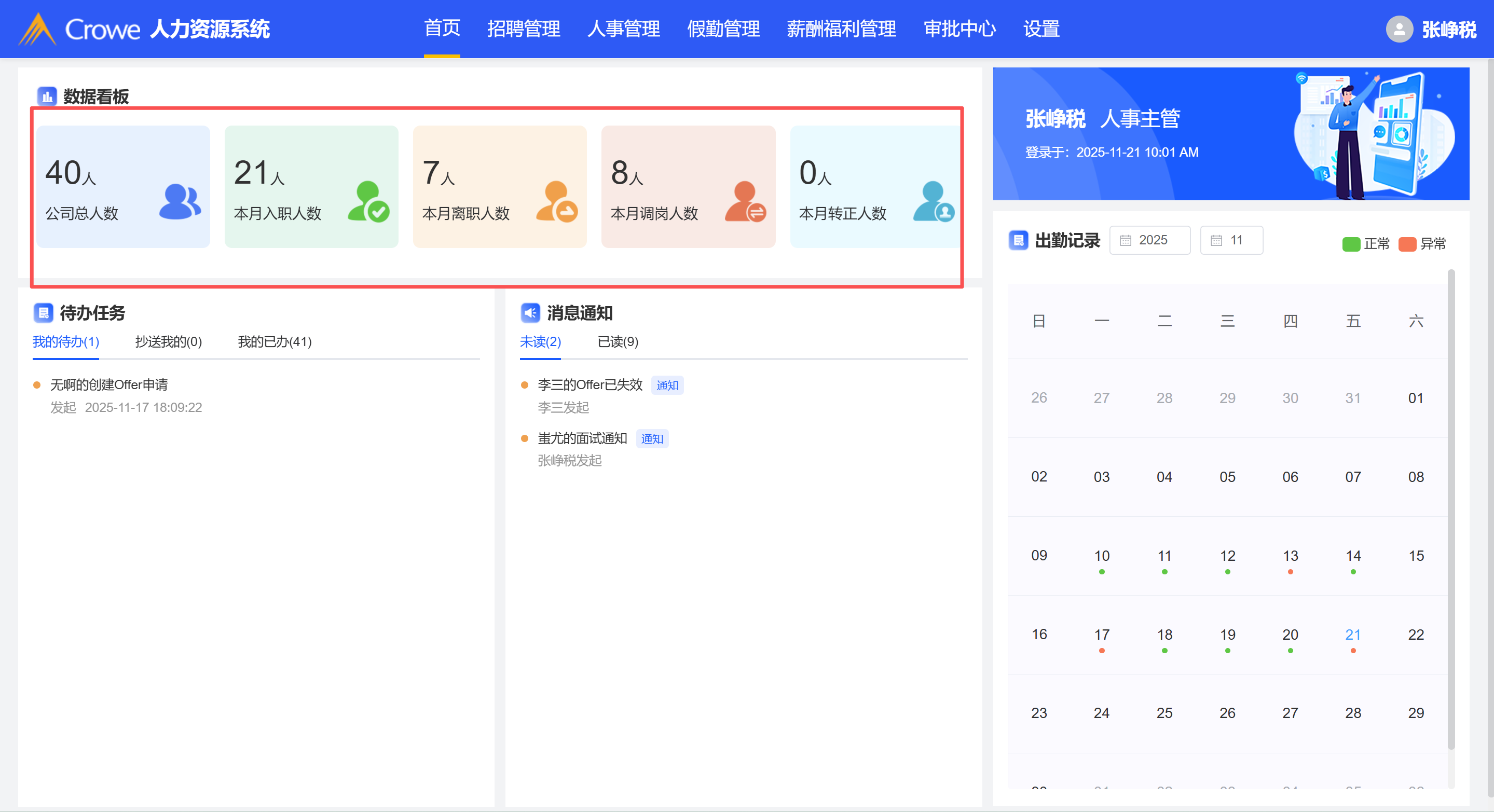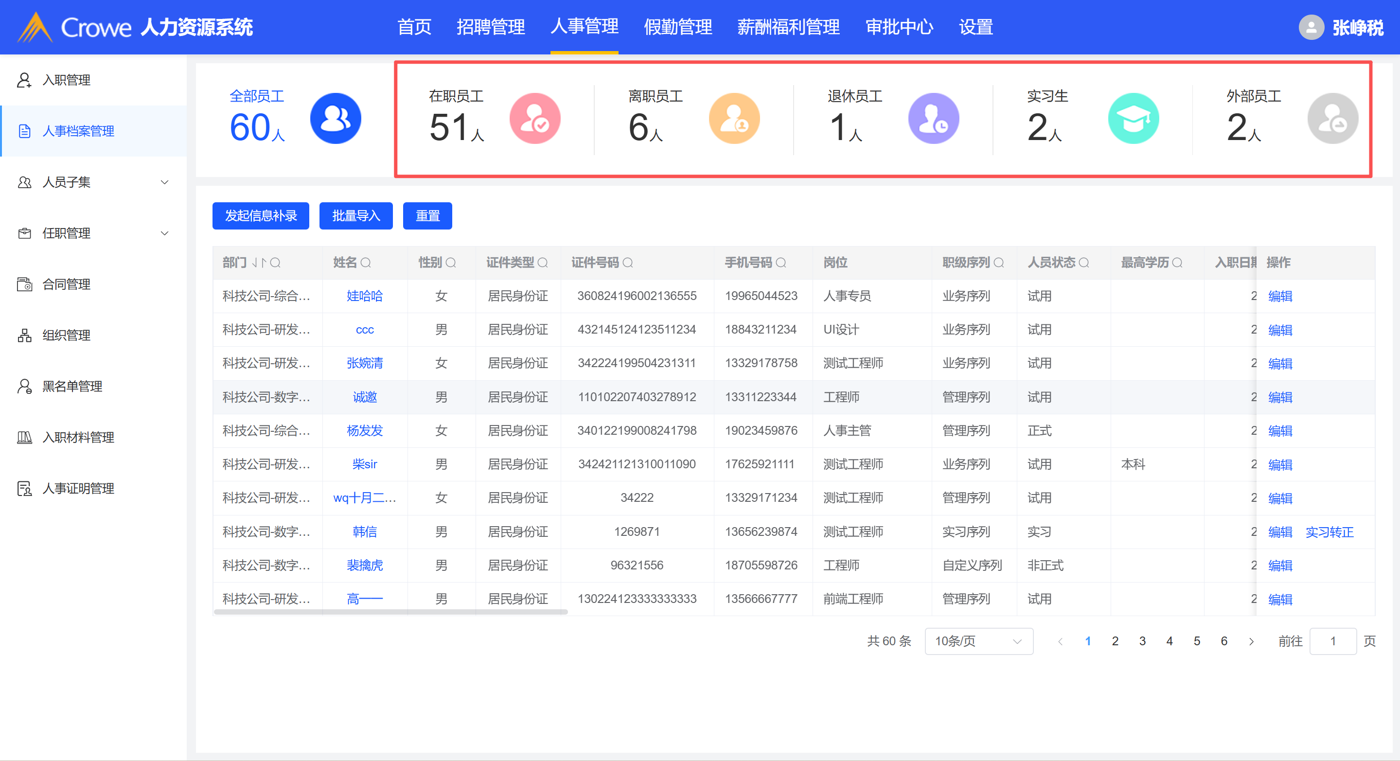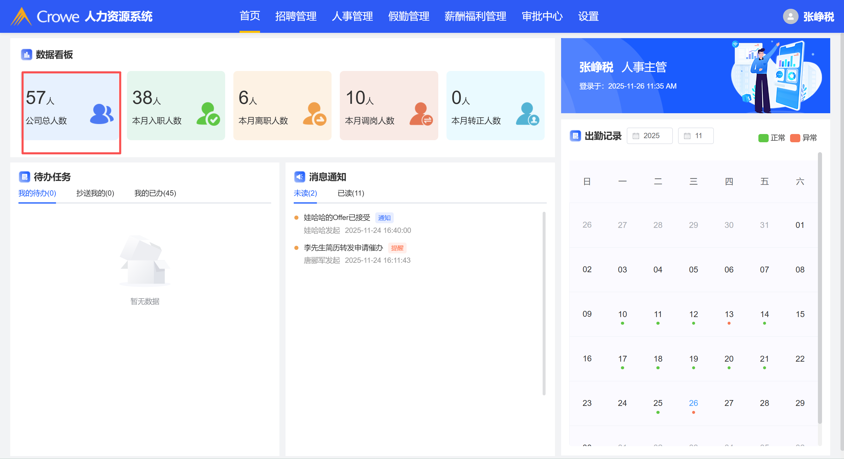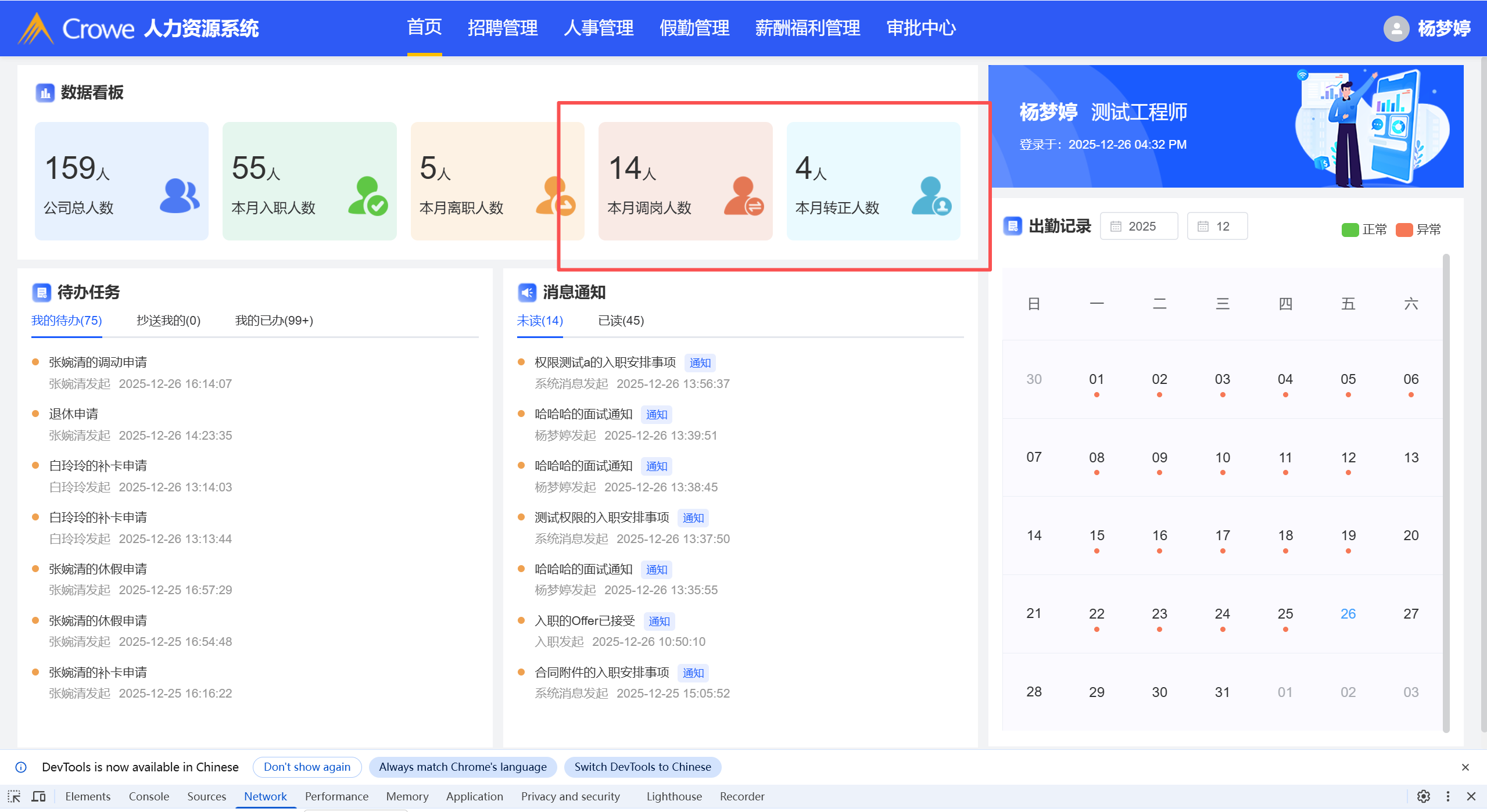 复测结果:首页统计人数与人事管理实际人数对不上,