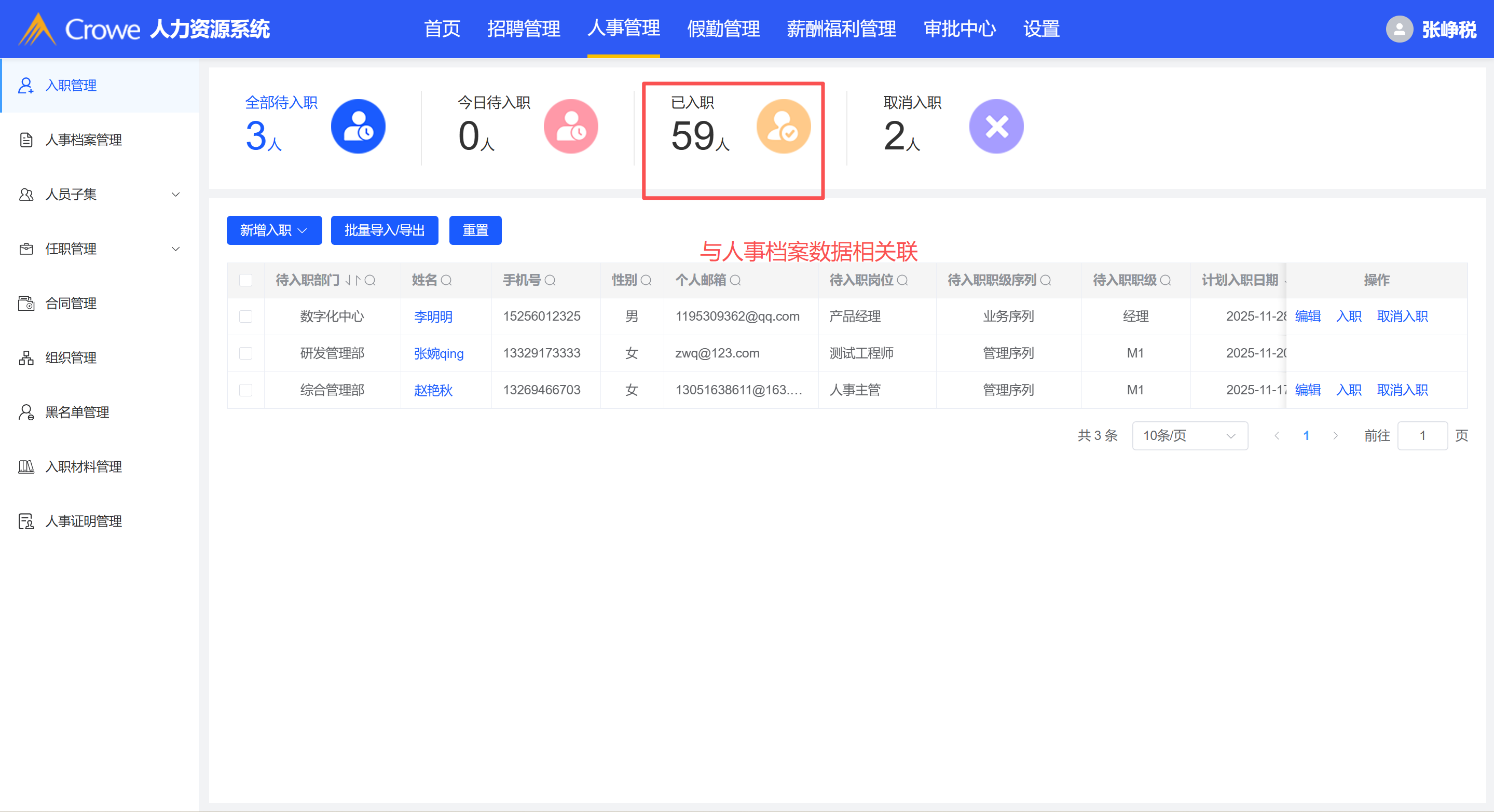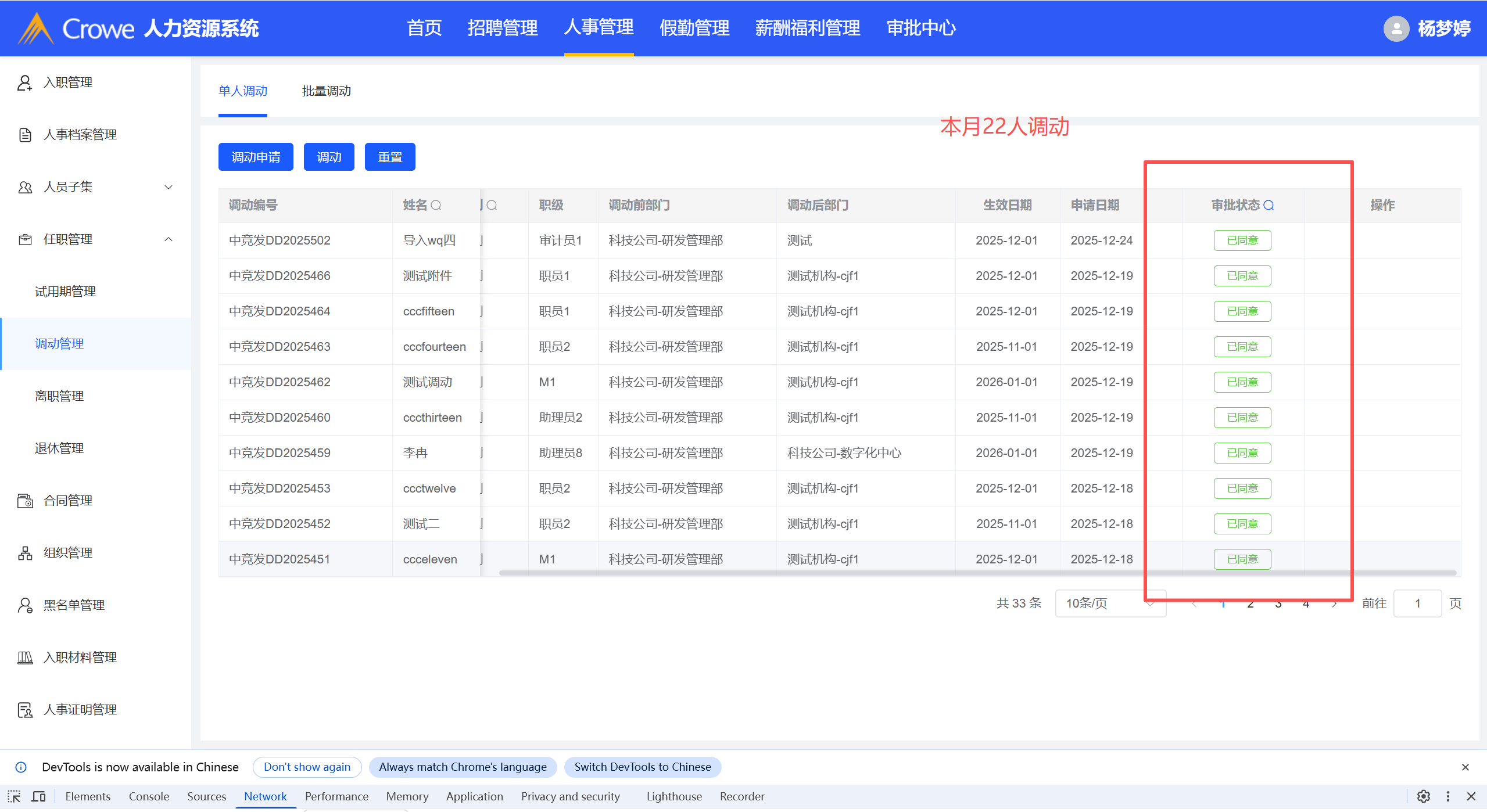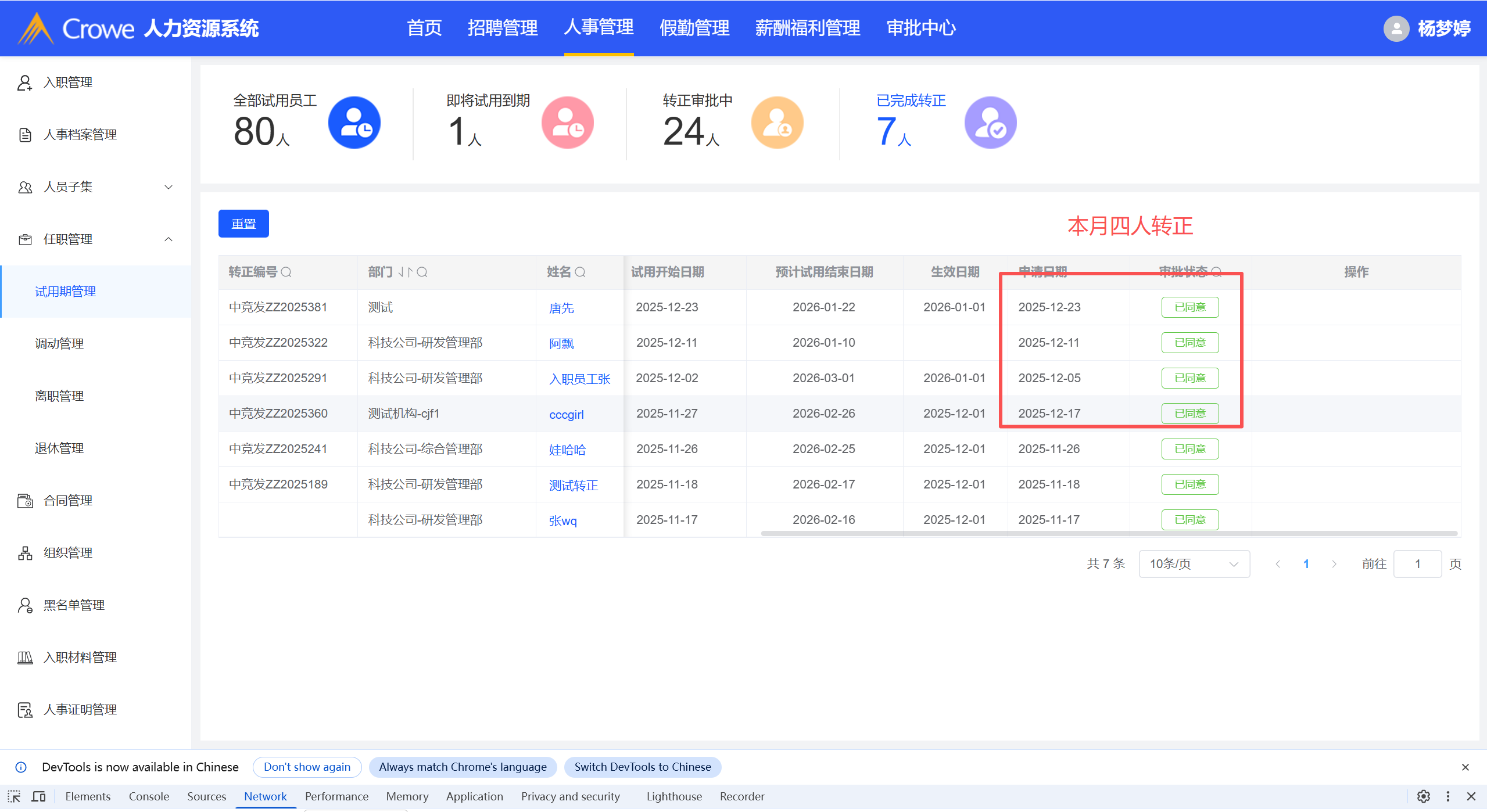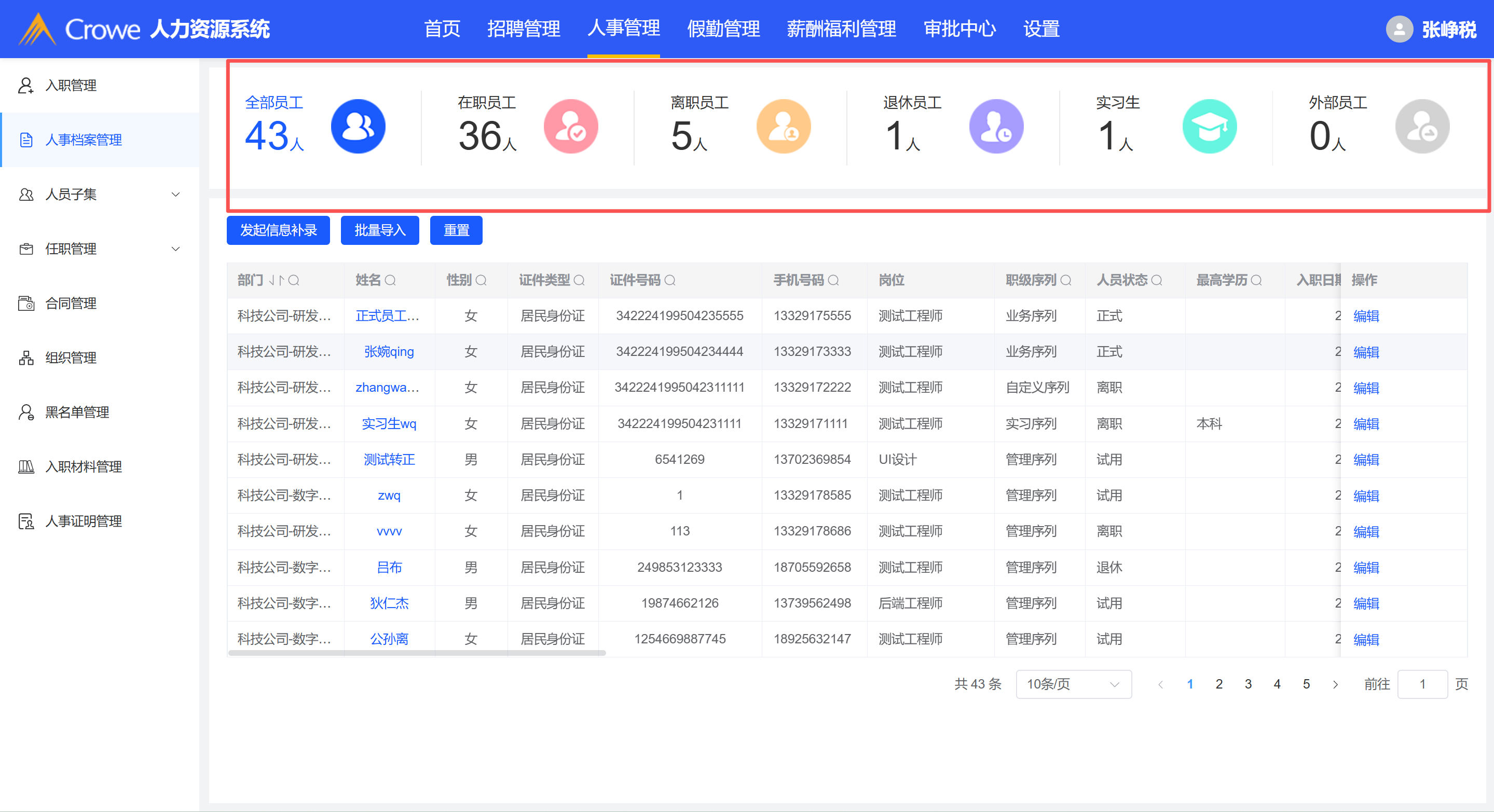 复测结果:首页统计人数与人事管理实际人数对不上,