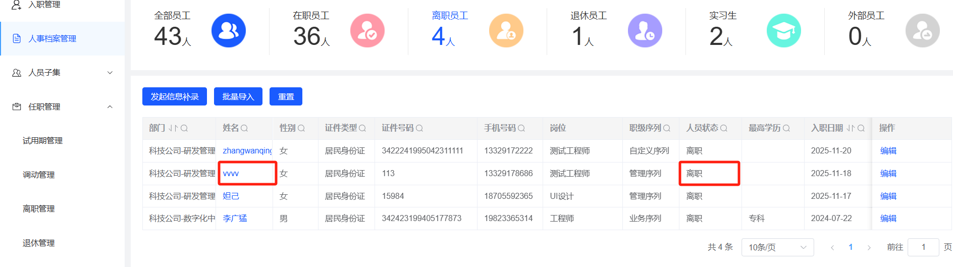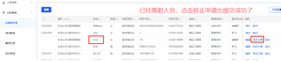 人事管理-试用期管理:已经离职的人员仍然可以发起转正申请