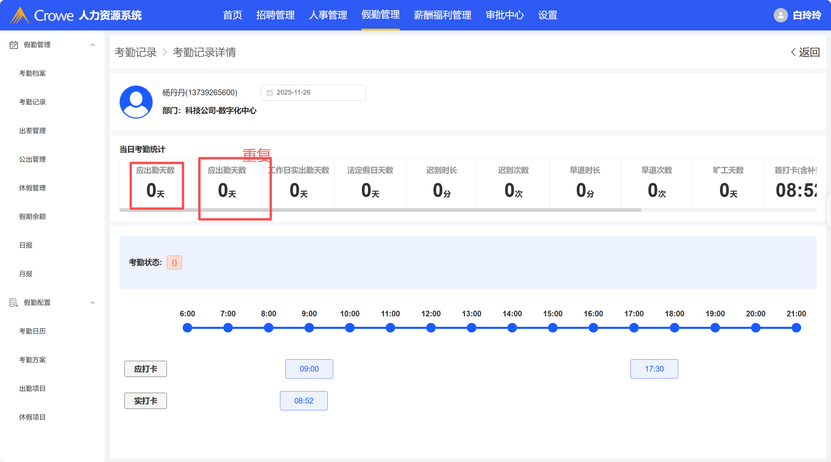 当日考勤统计重复