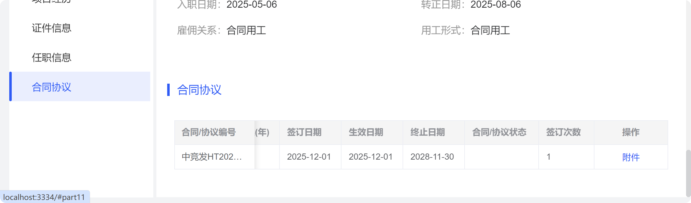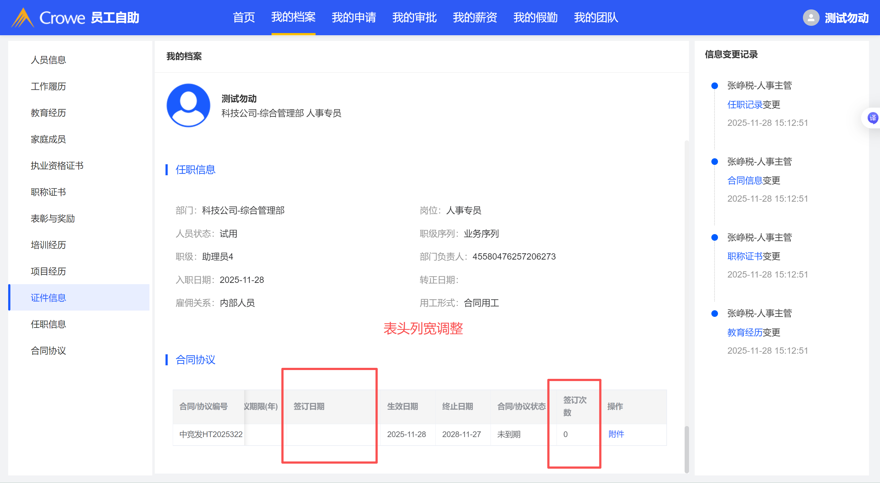 我的档案-合同信息表格中样式调整