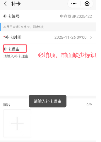 小程序:补卡理由前缺少必填项标志