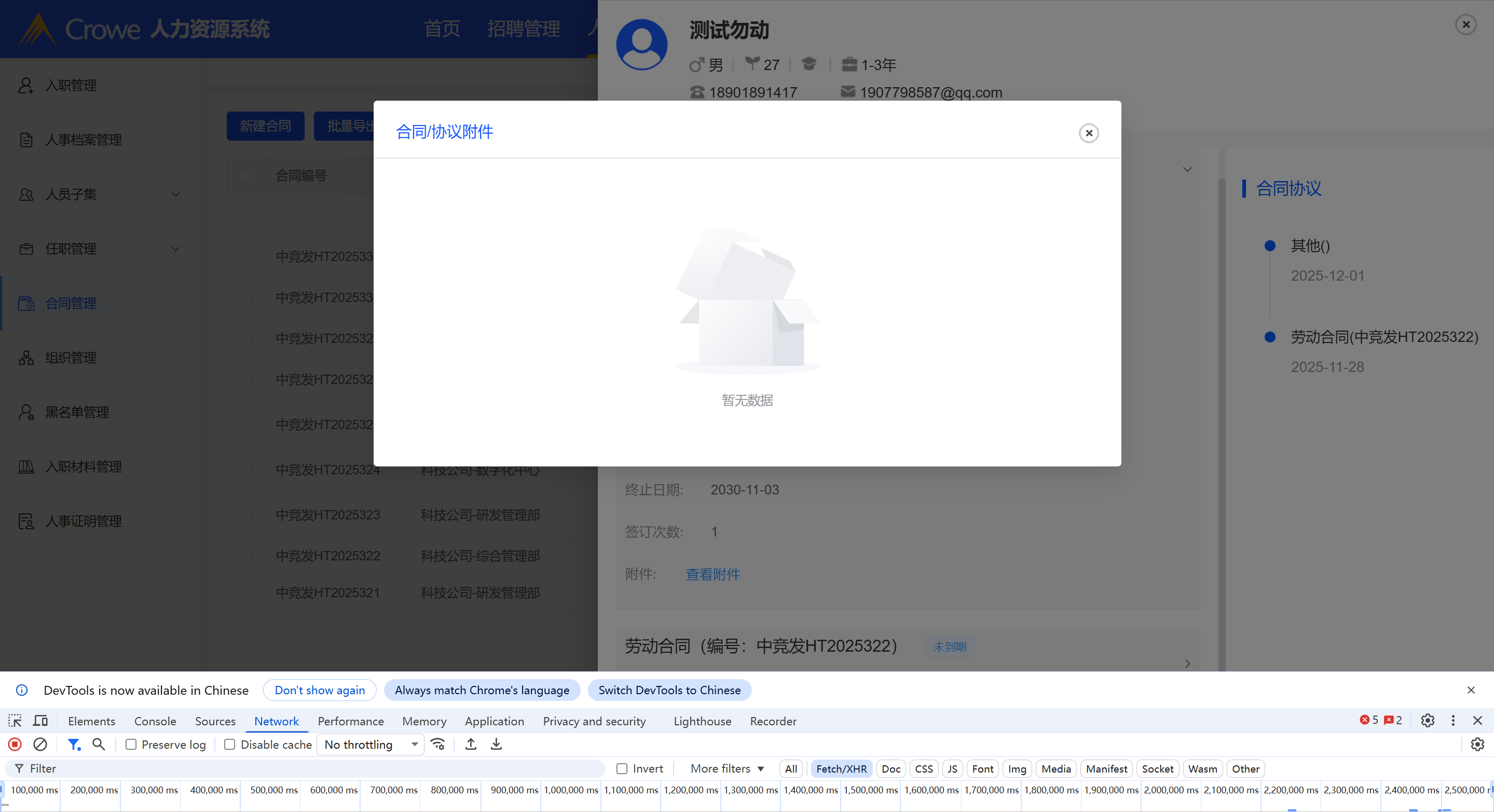 已关闭发起合同变更申请,上传的合同附件无法回显