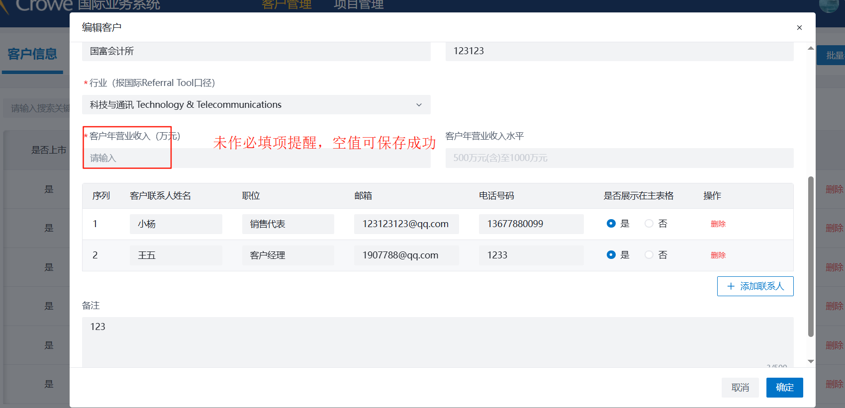 客户年营业收入未添加必填项提醒