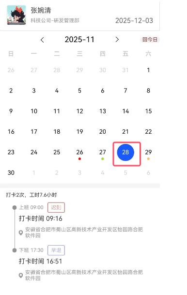 小程序-考勤月历:有迟到有早退的情况,在考勤月历中未显示标识