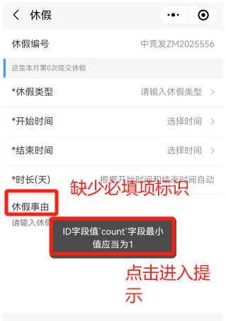 小程序-休假申请,点击进入提示异常,休假事由前缺少必填标识