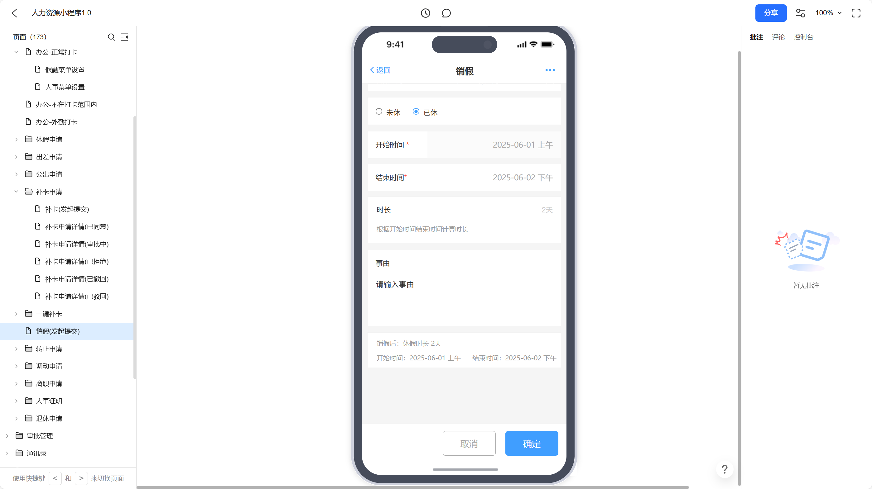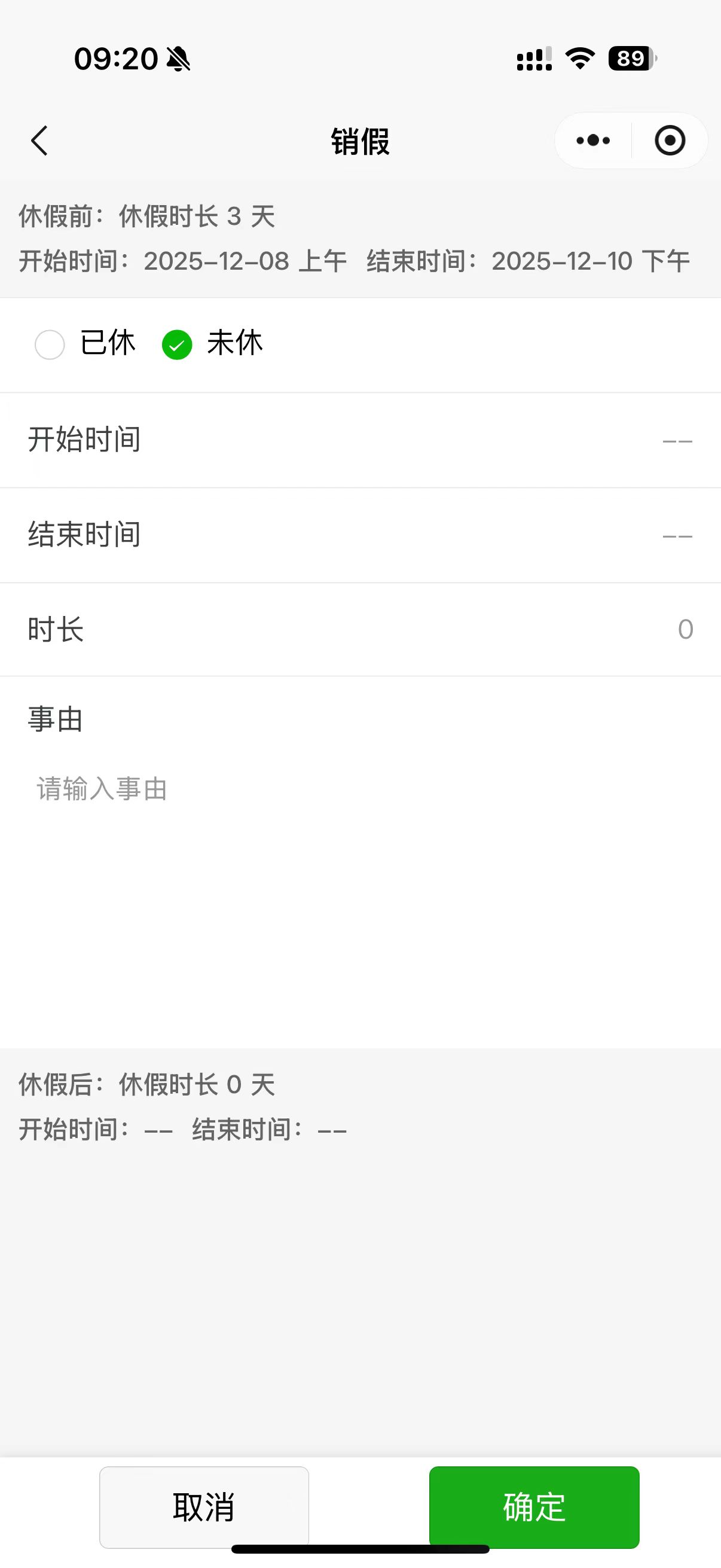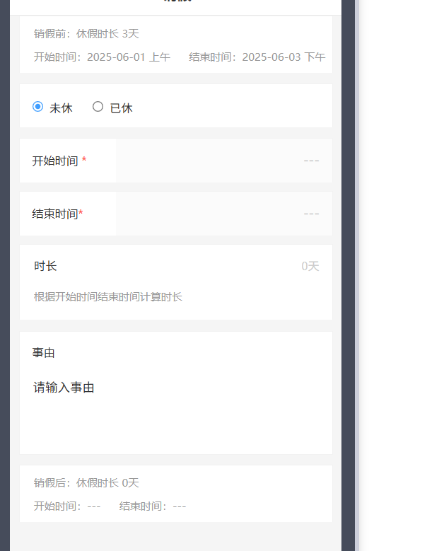小程序-销假申请中,未休的开始时间、结束时间没有带出来