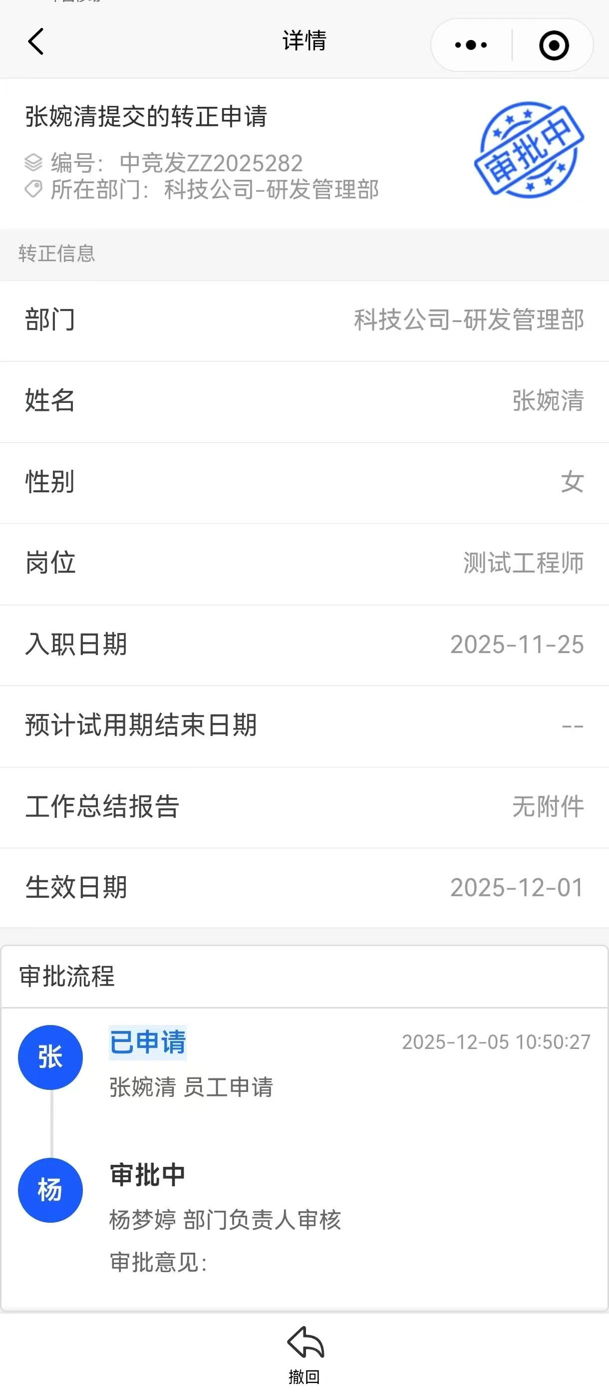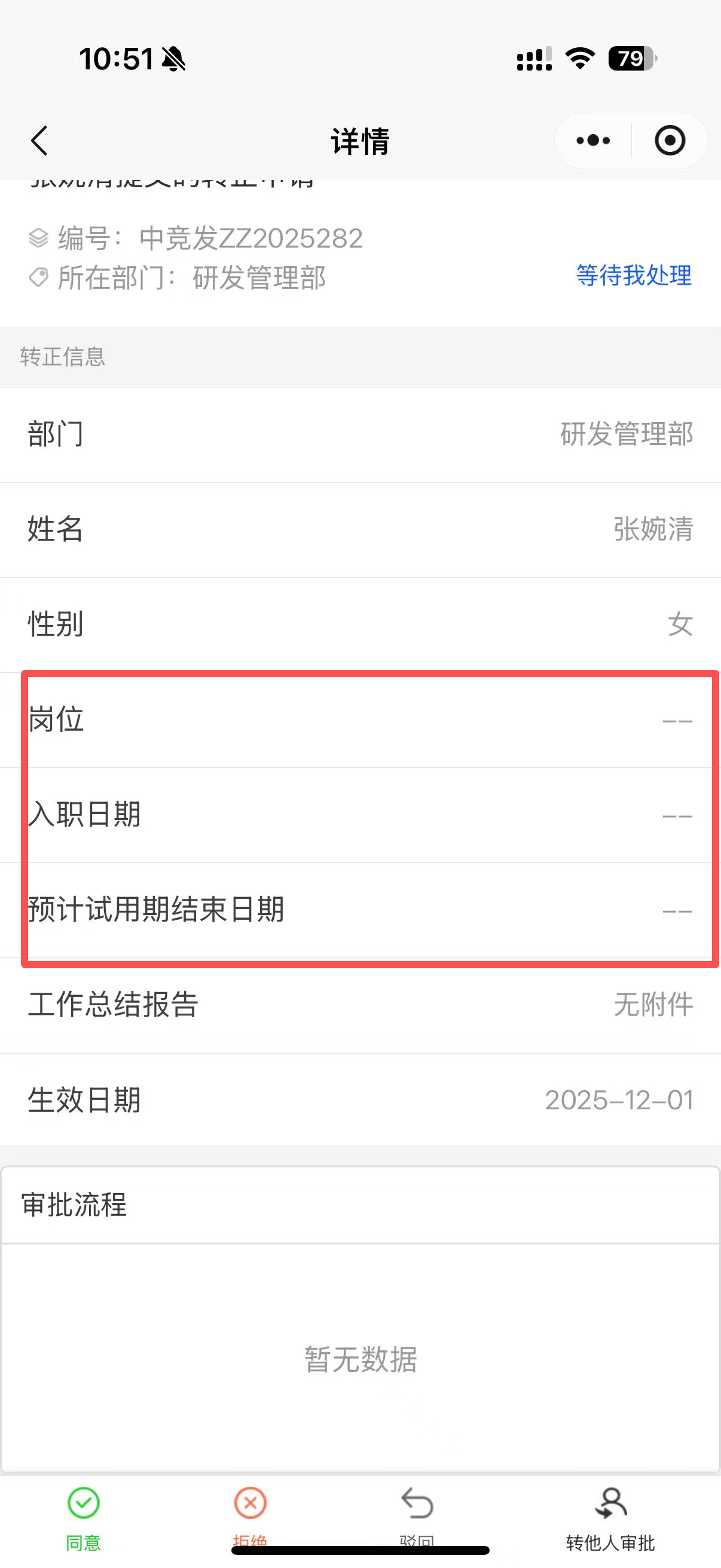 小程序-员工的岗位、入职日期在审核待办列表未回显,预计试用期结束日期未带出