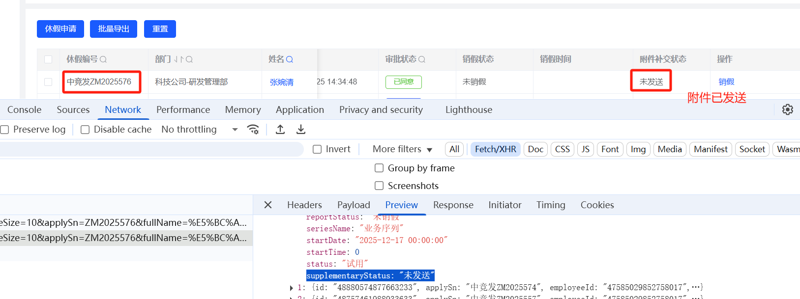 假勤管理-休假管理:附件已补交,仍提示未发送
