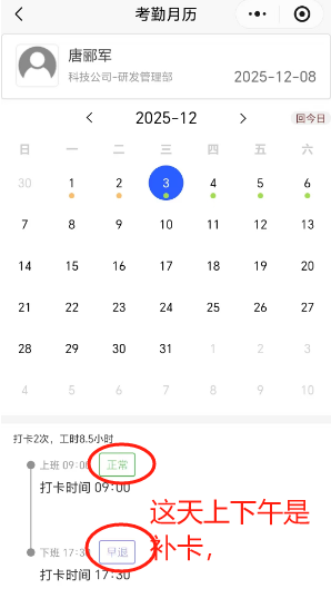 补卡的未显示补卡