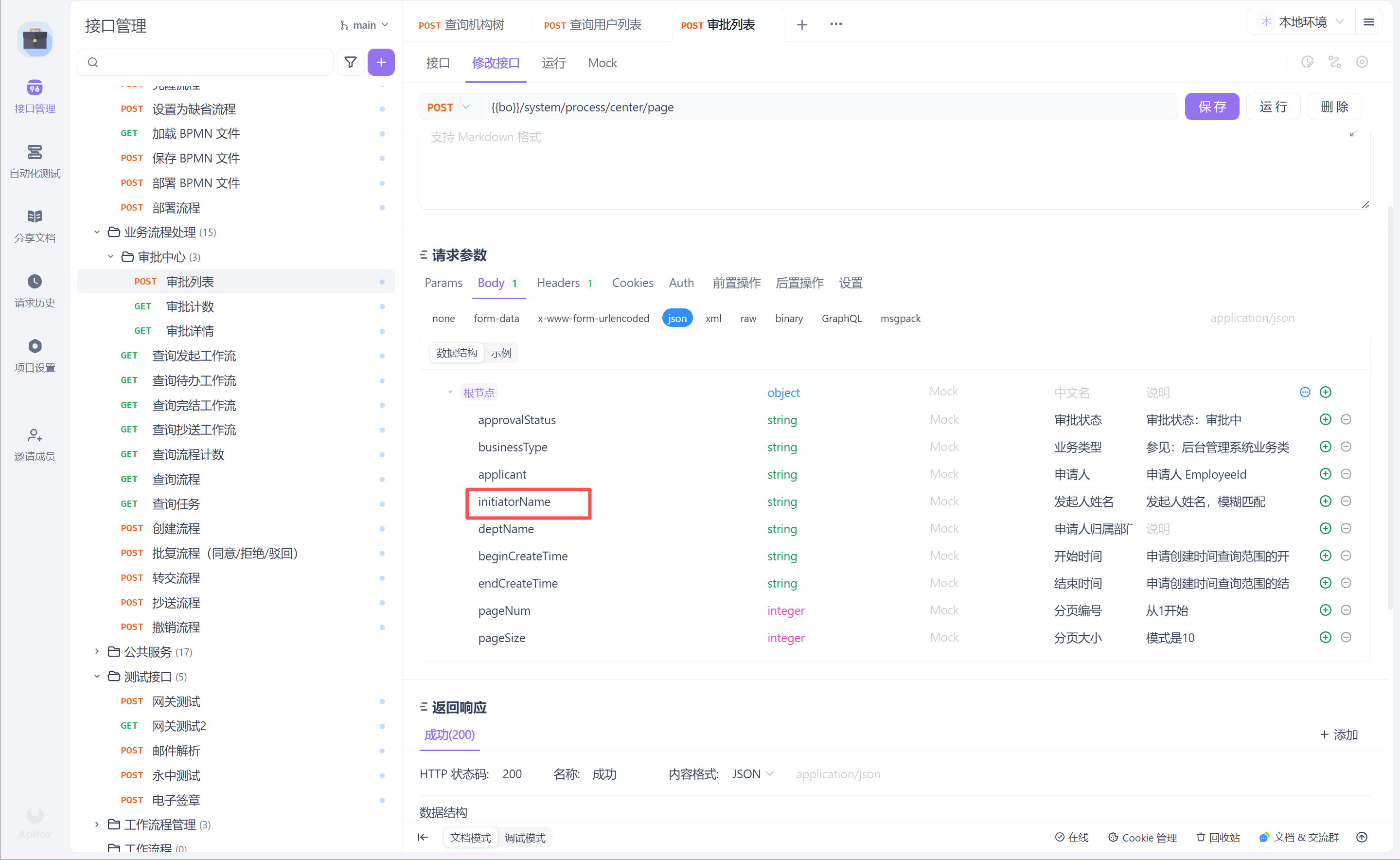 需求变更,原来是通过申请人筛选,现在是通过发起人筛选,后台接口已更新,参加参数: