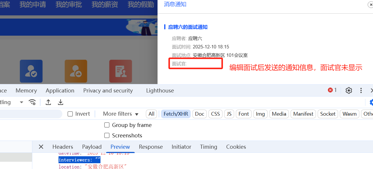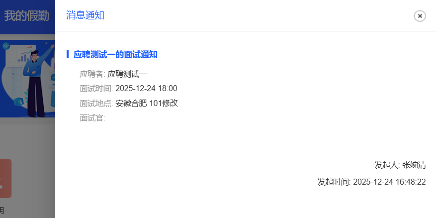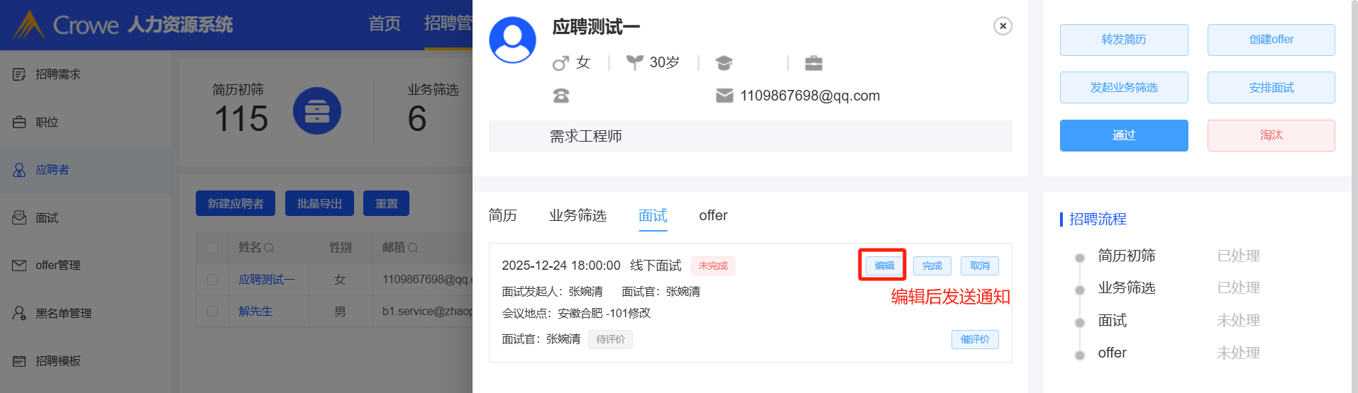 已关闭招聘管理-应聘者:编辑面试后发送的通知,通知信息里面试官未显示