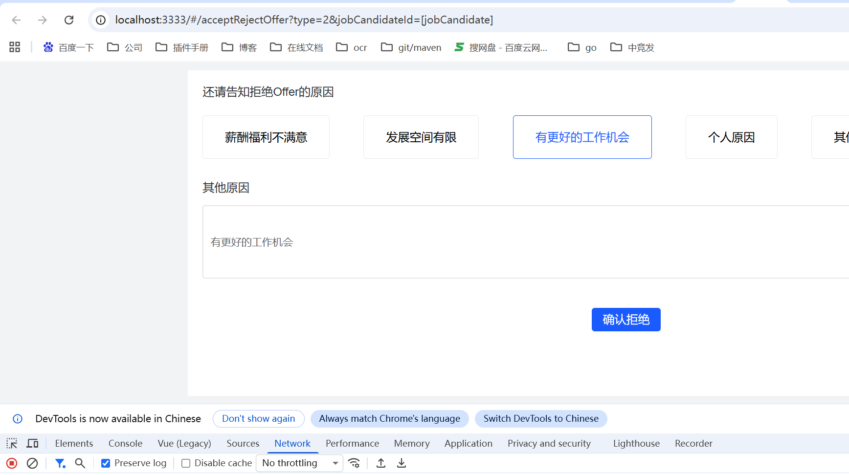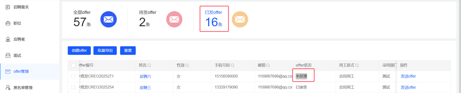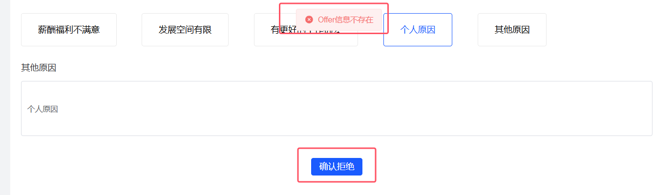 招聘管理-offer管理:应聘者邮箱中拒绝offer,提示offer信息不存在