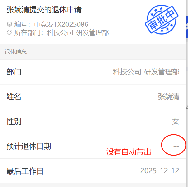 小程序-退休申请:退休申请中预计退休日期没有自动带出