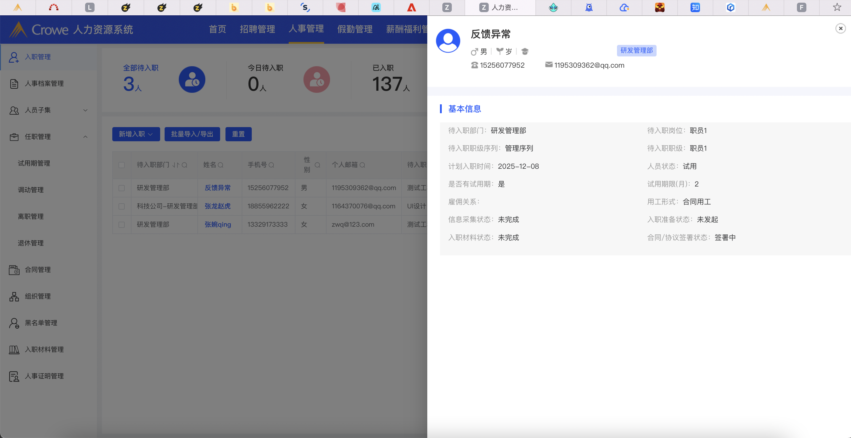 人事管理-入职管理-个人详情弹窗中,「科技公司-信息研发部」展示信息不应该靠右对齐,参考其他页面,应该和个人信息靠近
