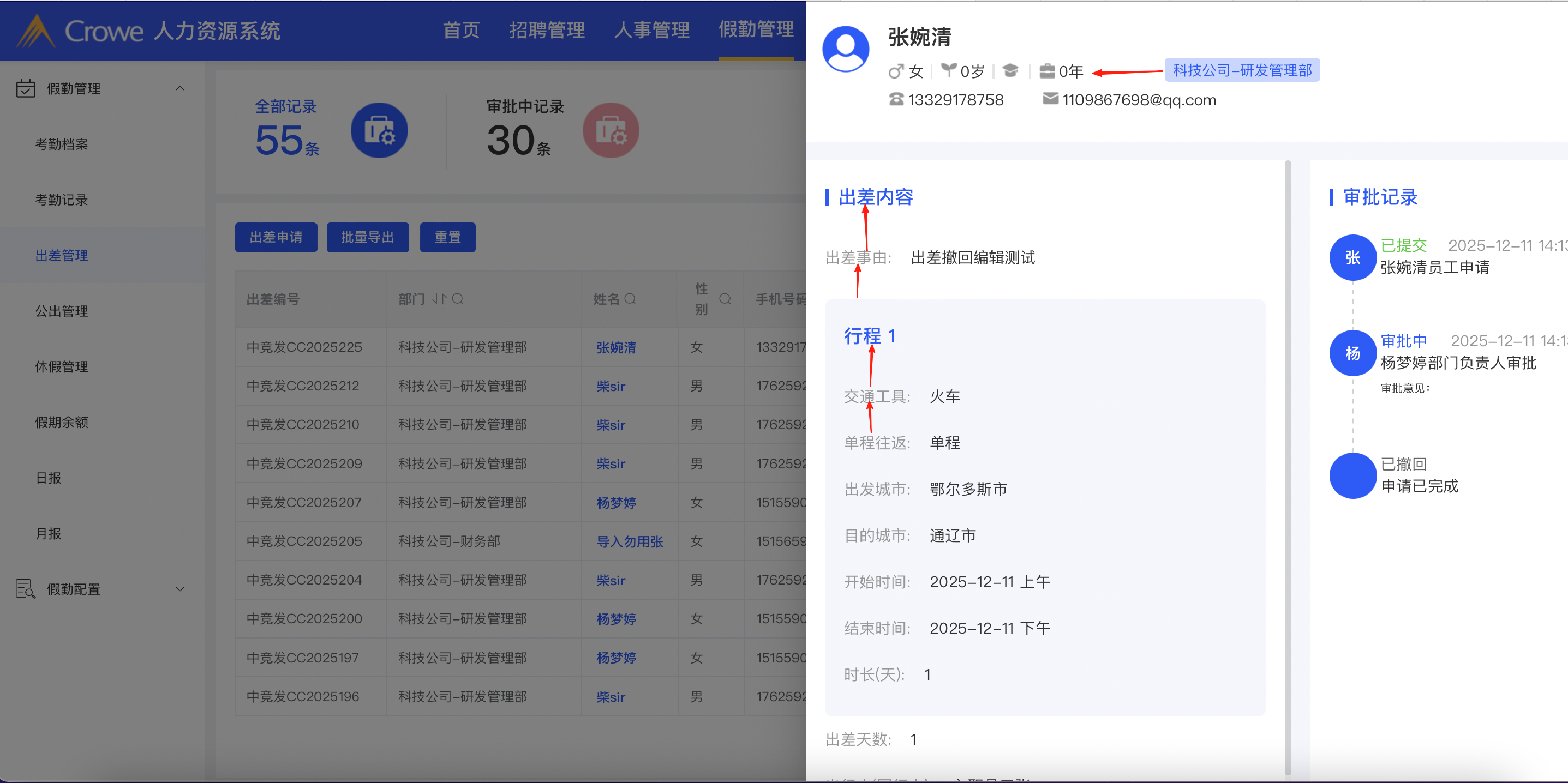 1.出差管理-出差详情弹窗 小标题和正文内容间距,正文文字间距 参考招聘管理-招聘需求-需求详情页面的间距保持统一,个人信息中,公司-职位信息向左移动,靠近