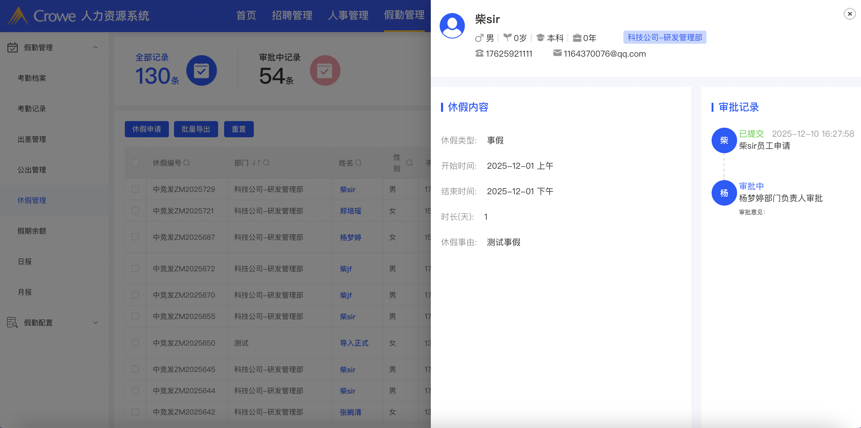 3.休假管理-休假管理个人详情弹窗 小标题和正文内容间距,正文文字间距 参考招聘管理-招聘需求-需求详情页面的间距保持统一,个人信息中,公司-职位信息向左移动,靠近