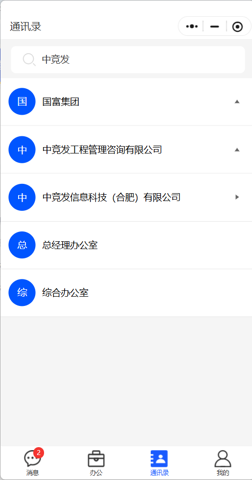 小程序-通讯录,建议对搜索结果优化,层级展开、收起显示后,看不明白