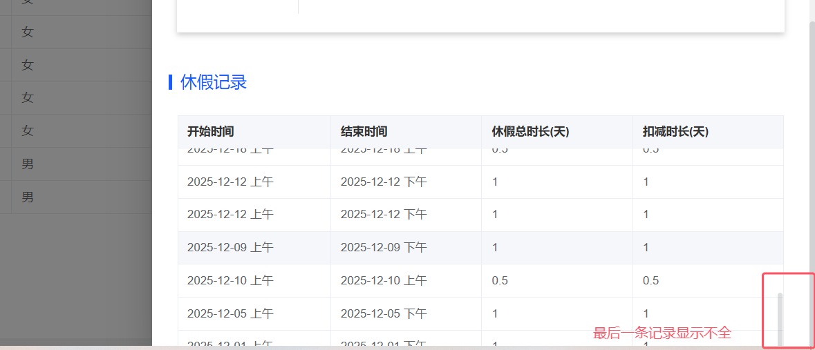 假勤管理-假期余额:休假记录最后一条信息显示不全