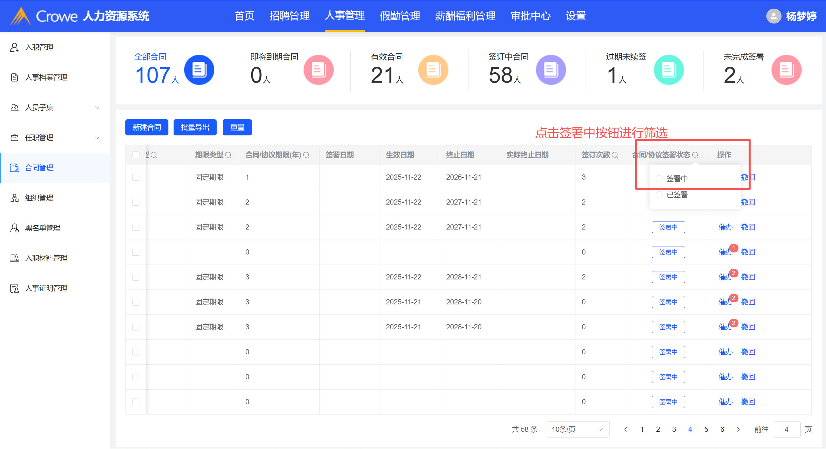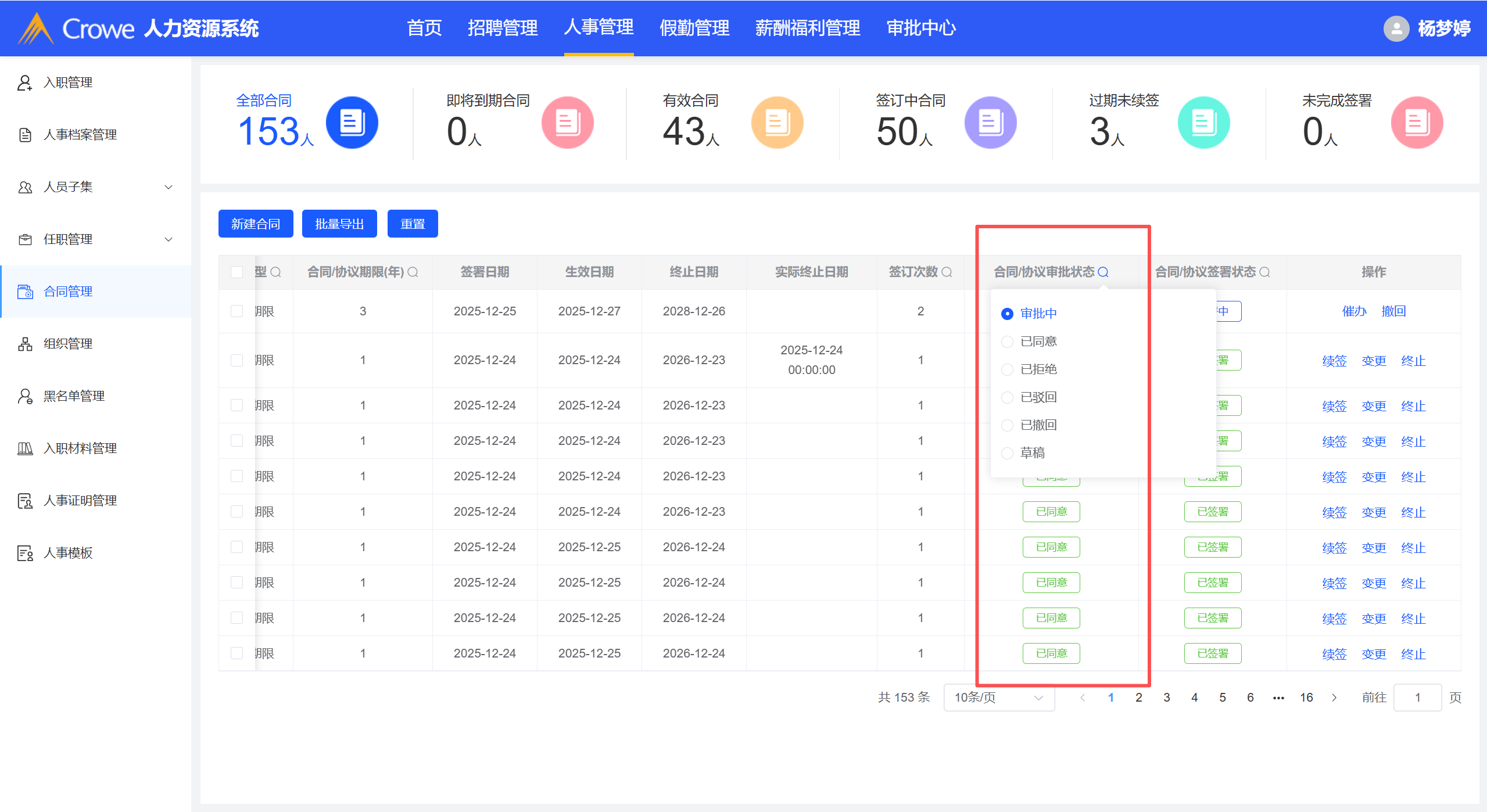已关闭合同列表合同/协议签署状态进行筛选后,重置按钮失效