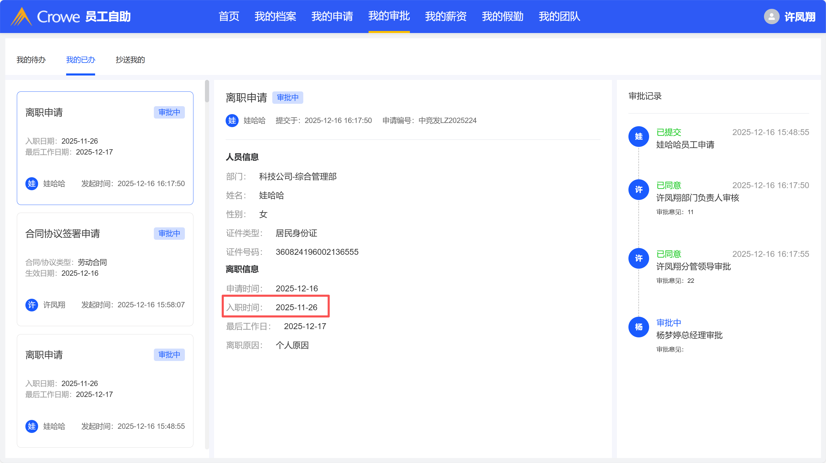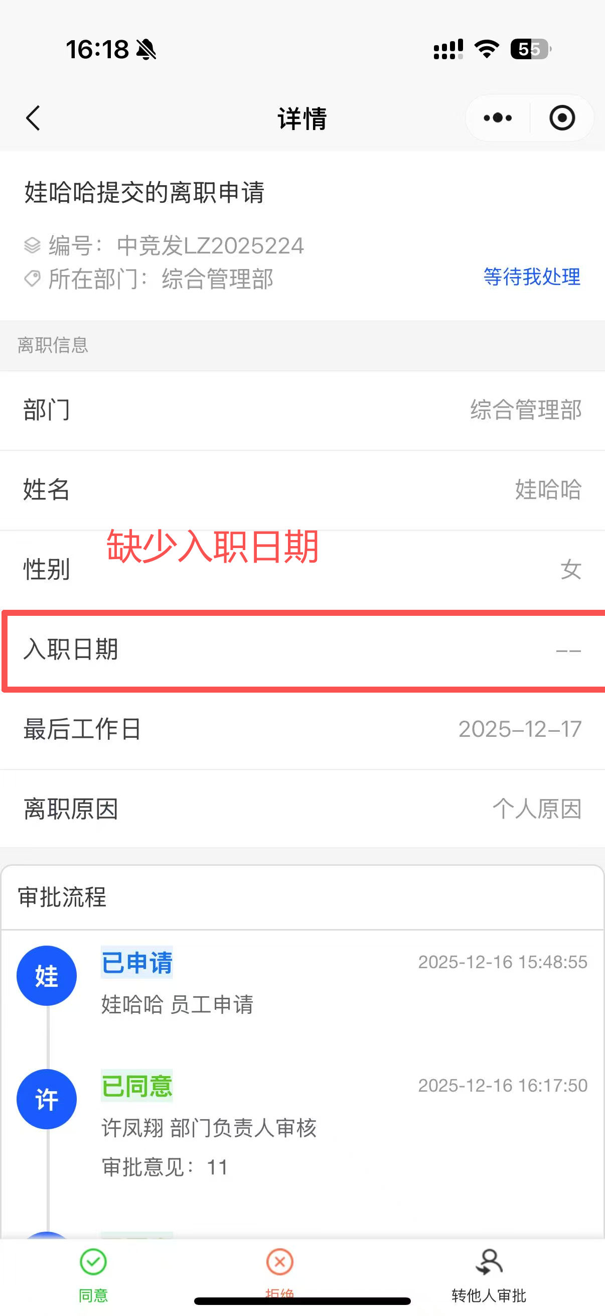 小程序-小程序审批表单中缺少入职时间,字段也需要与PC端一致