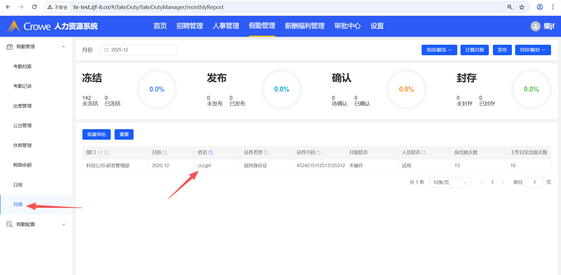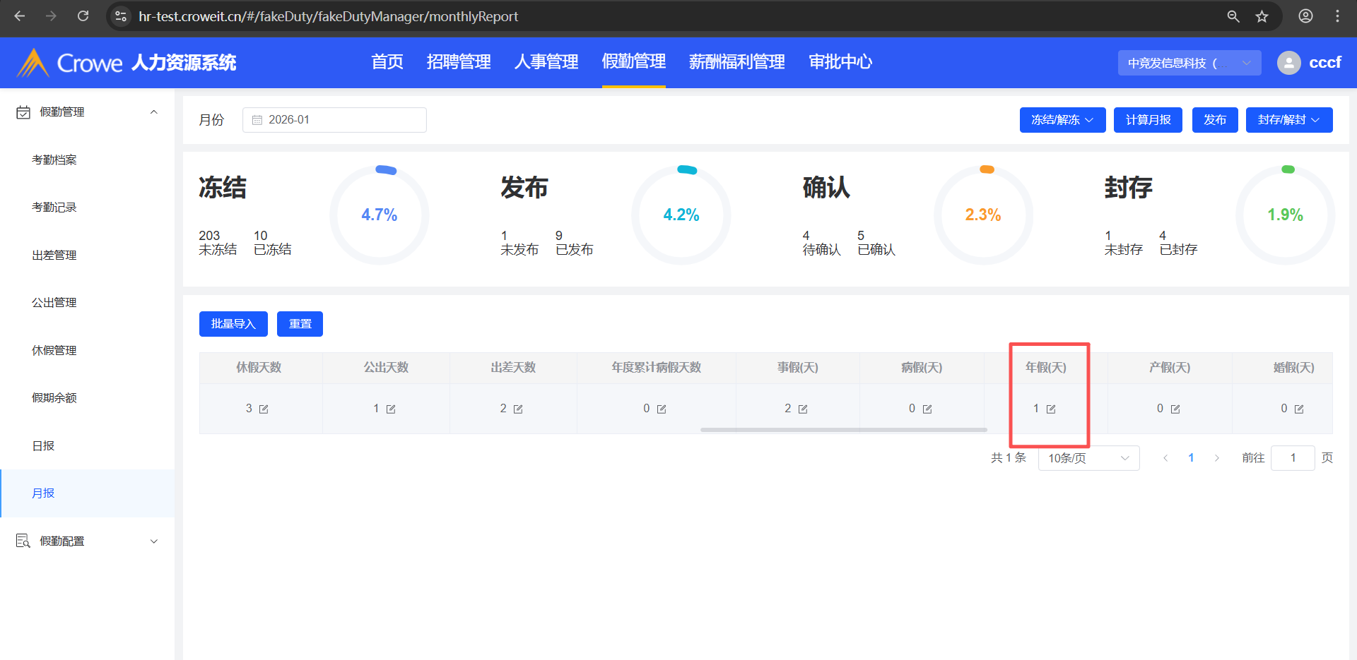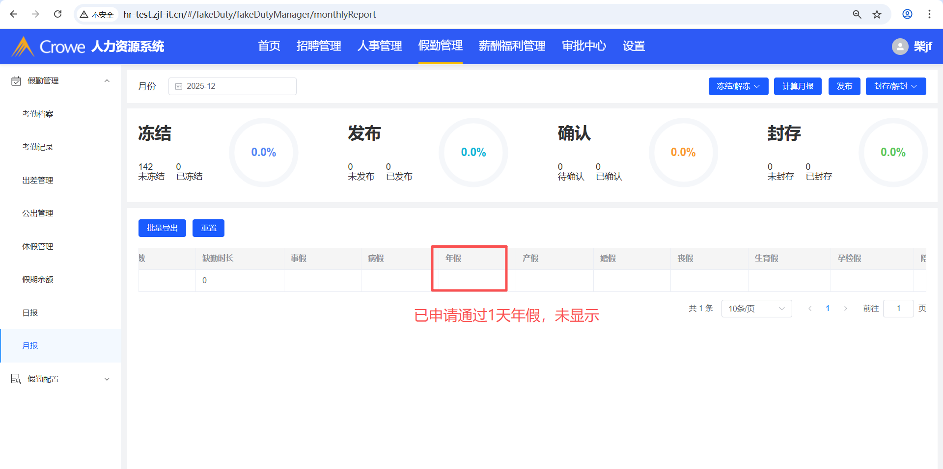 回归测试:未通过,月报计算后,列表字段年假未显示1