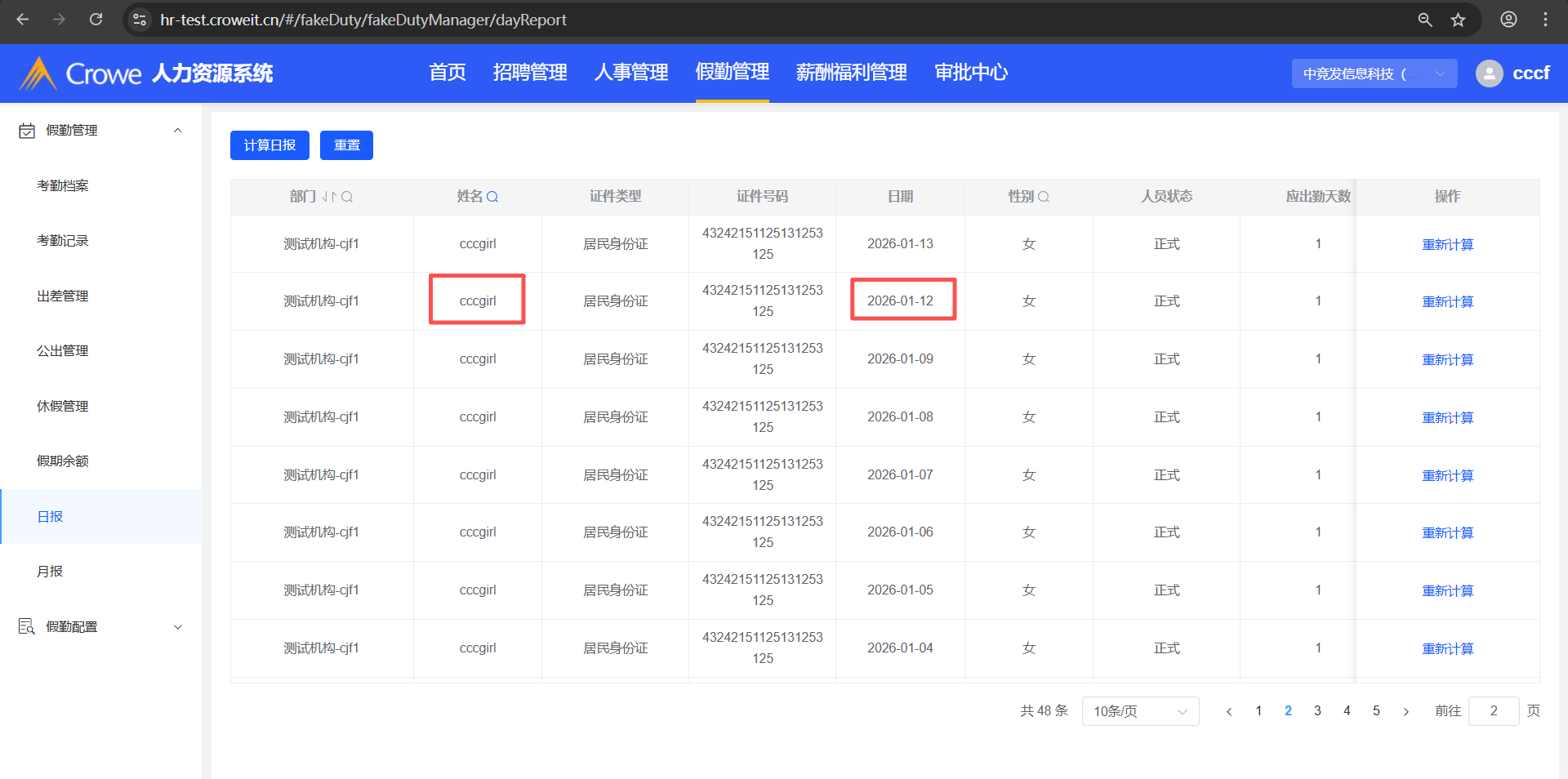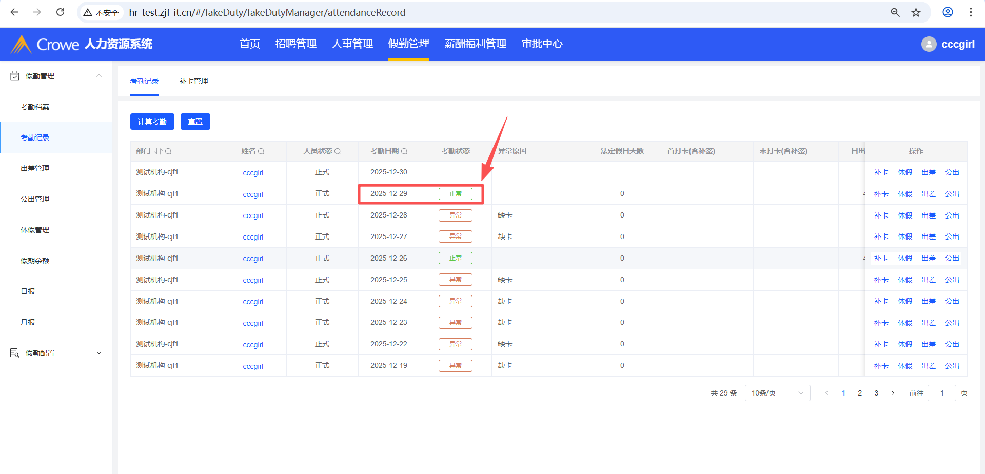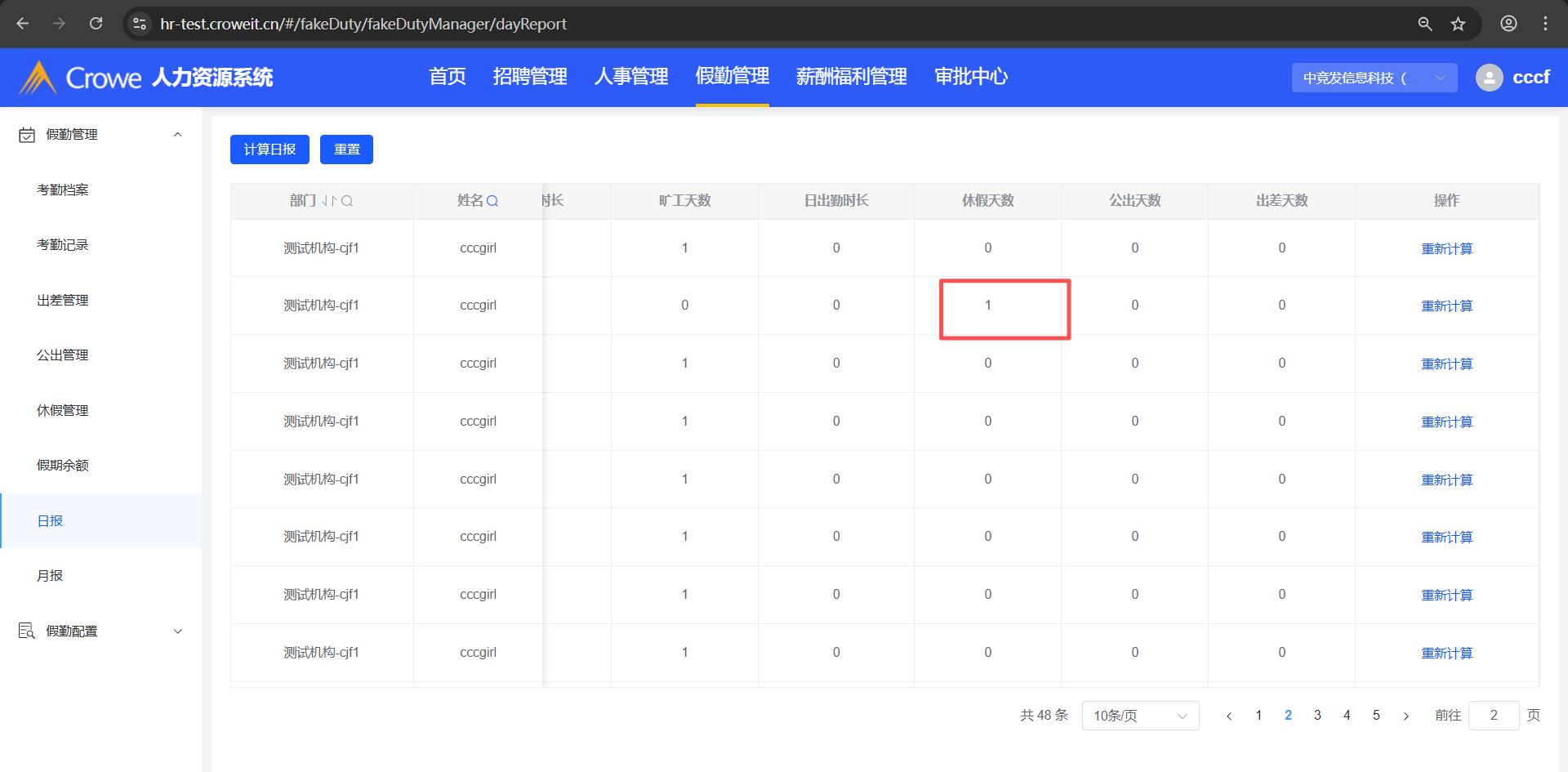 回归测试:未通过,月报计算后,列表字段年假未显示1