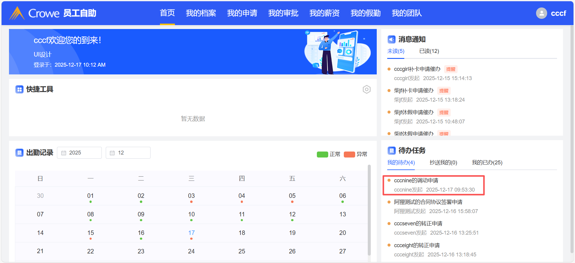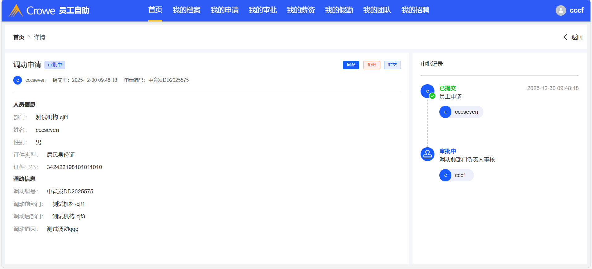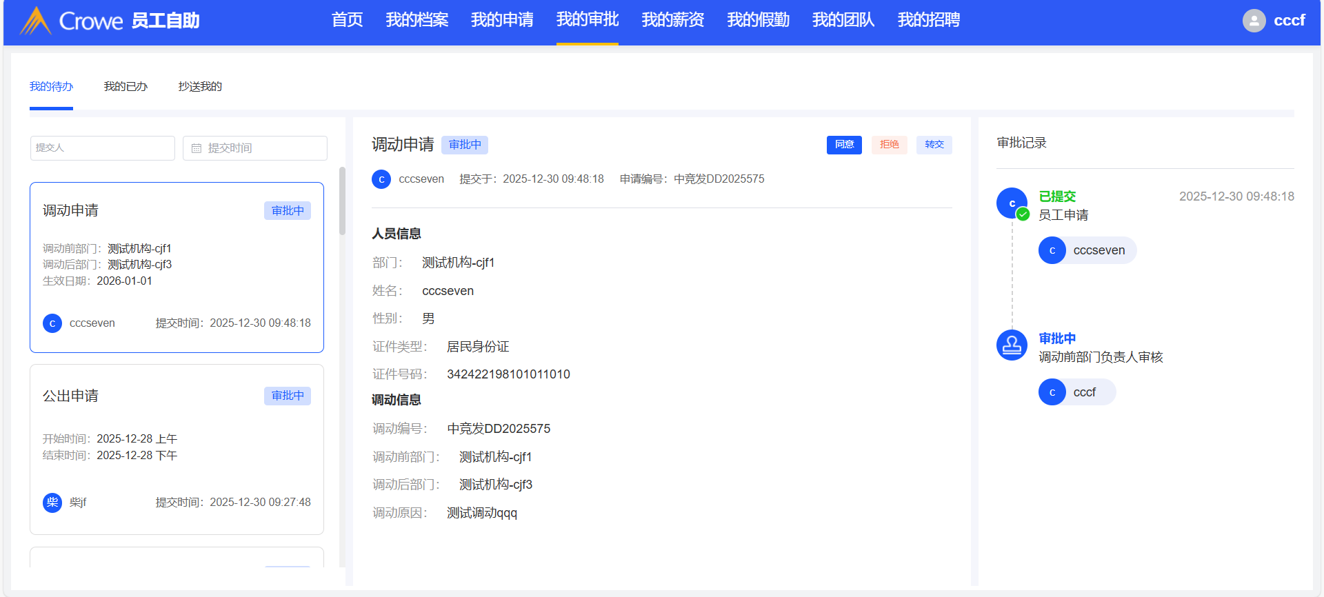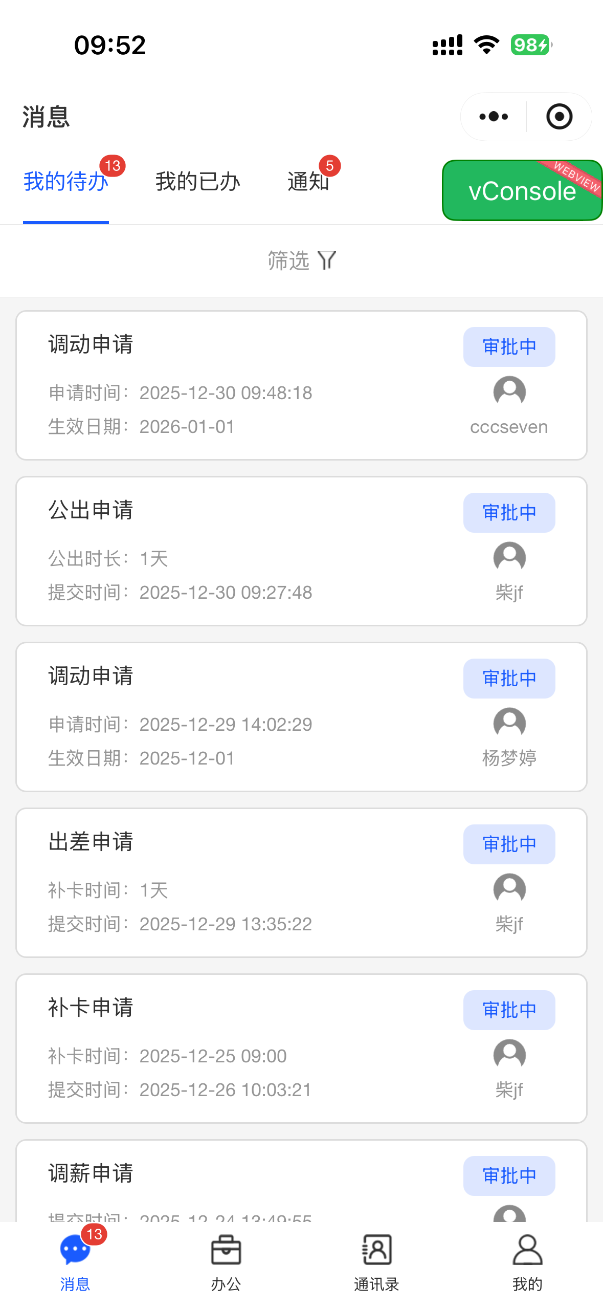 已关闭小程序-消息-我的待办,调动审批的申请时间,应该显示员工申请的提交时间,人力资源系统的首页待办、员工自助的首页待办、我的审批待办 同理