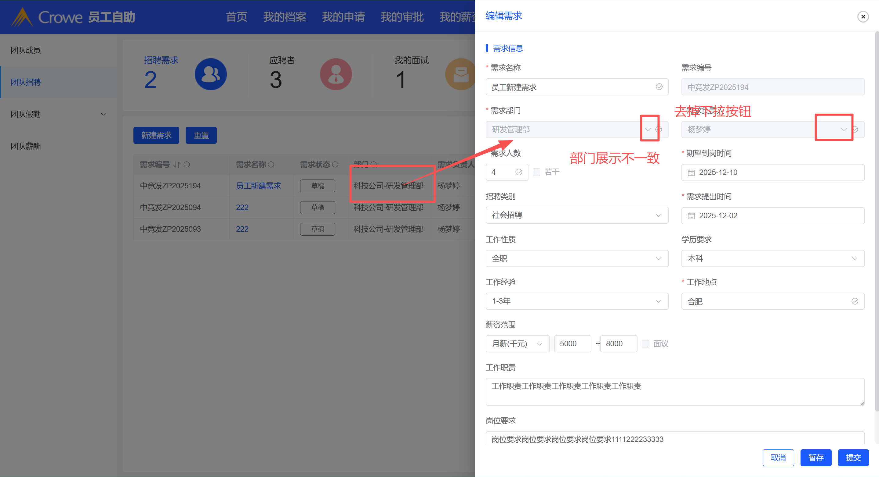 员工自助-新建需求表单去掉下拉按钮