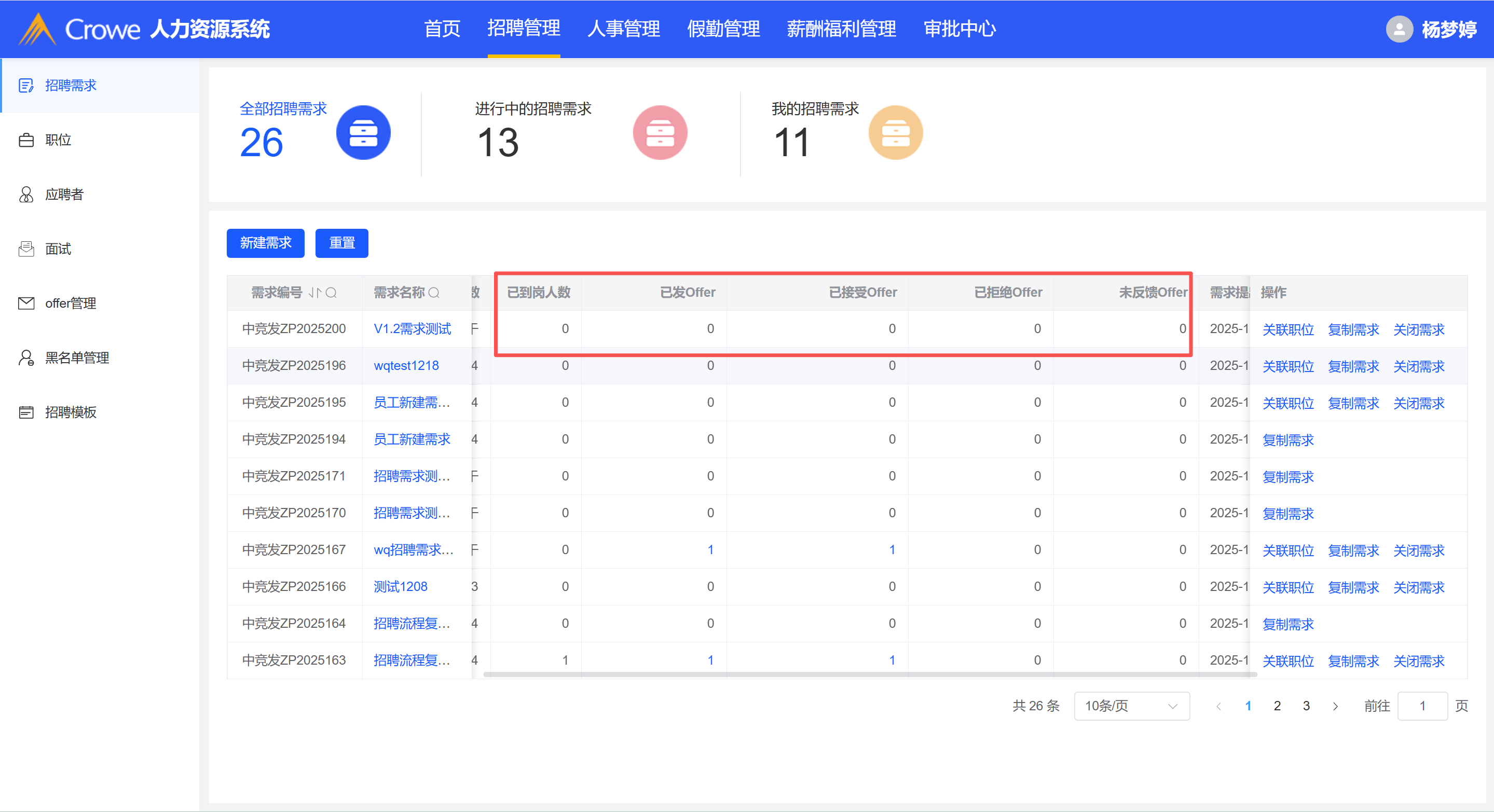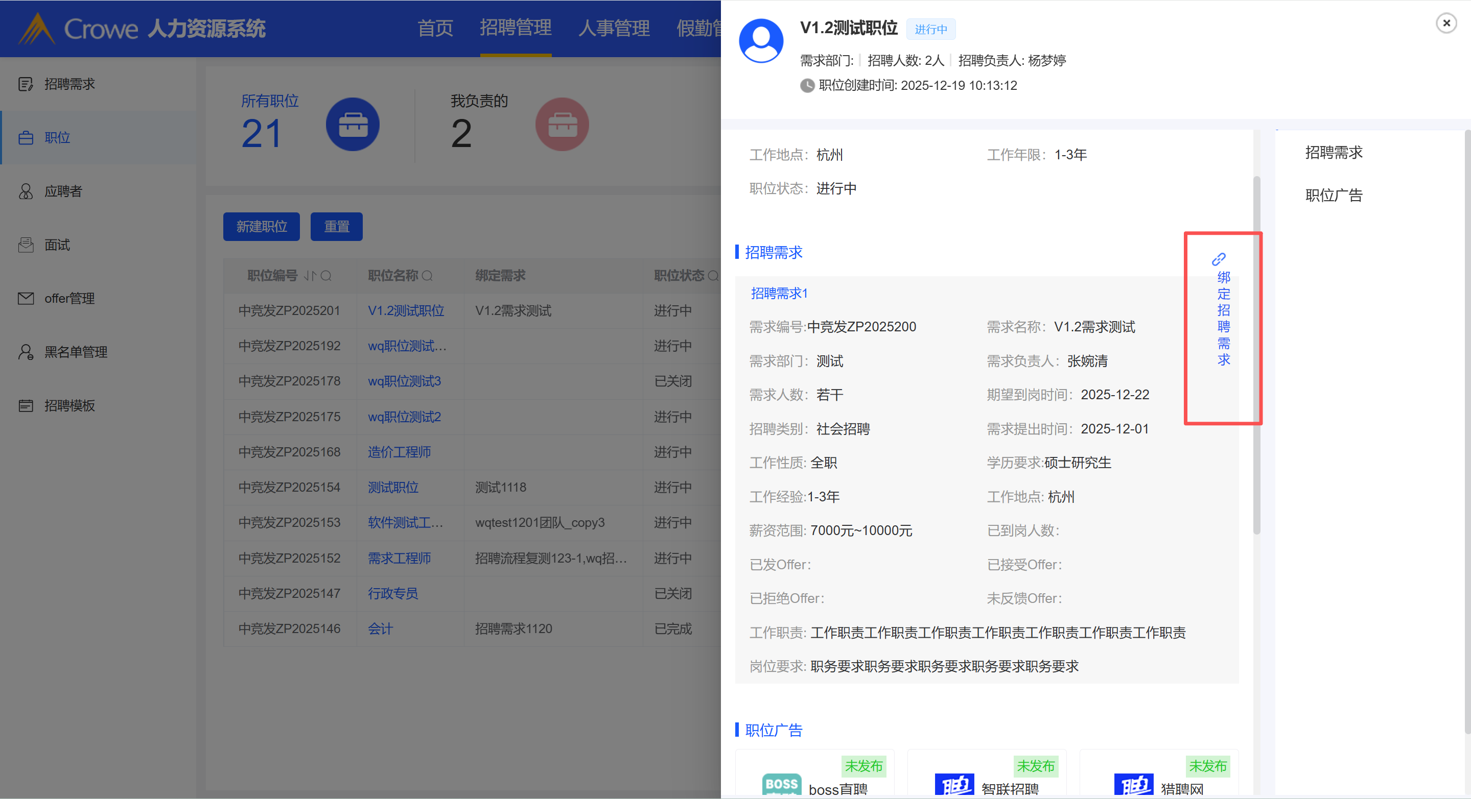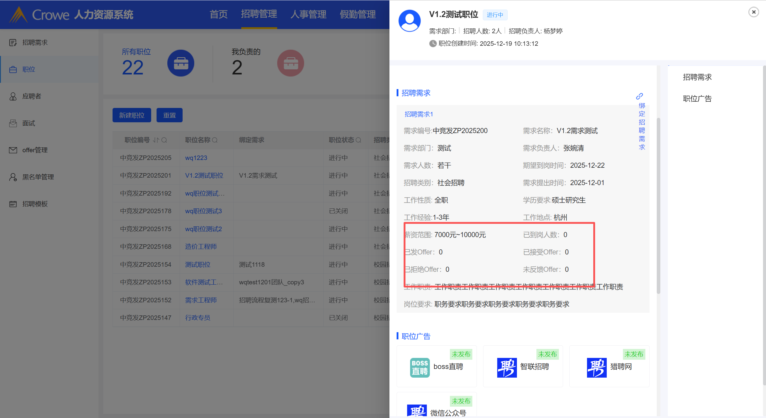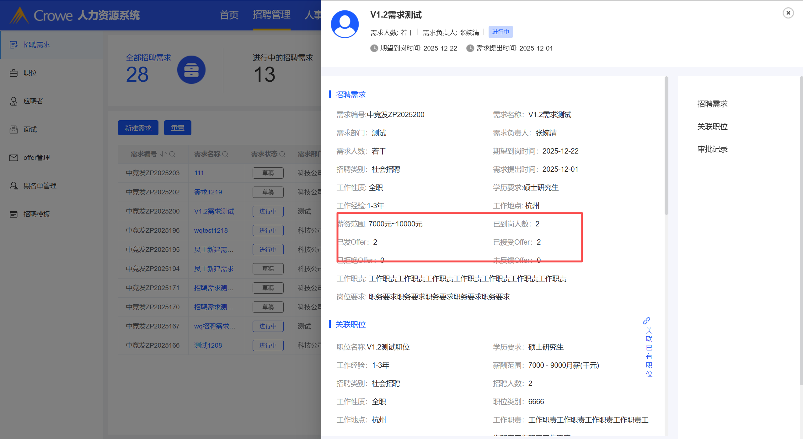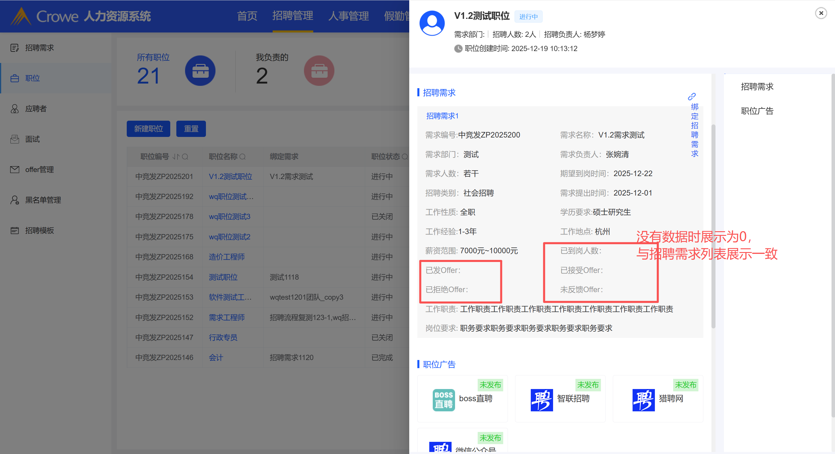 职位绑定的招聘需求,已发offer等字段的统计与需求详情不一致