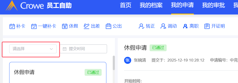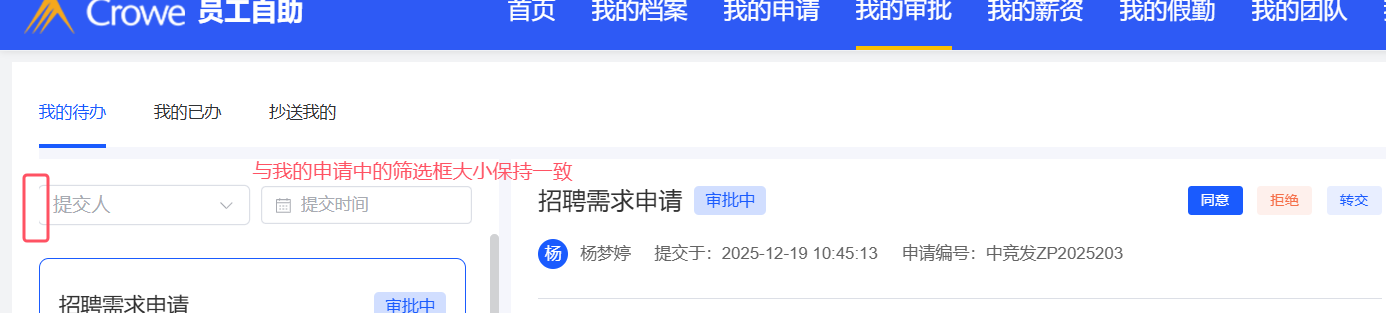 员工自助-我的审批:提交人选择框的大小与其他保持一致