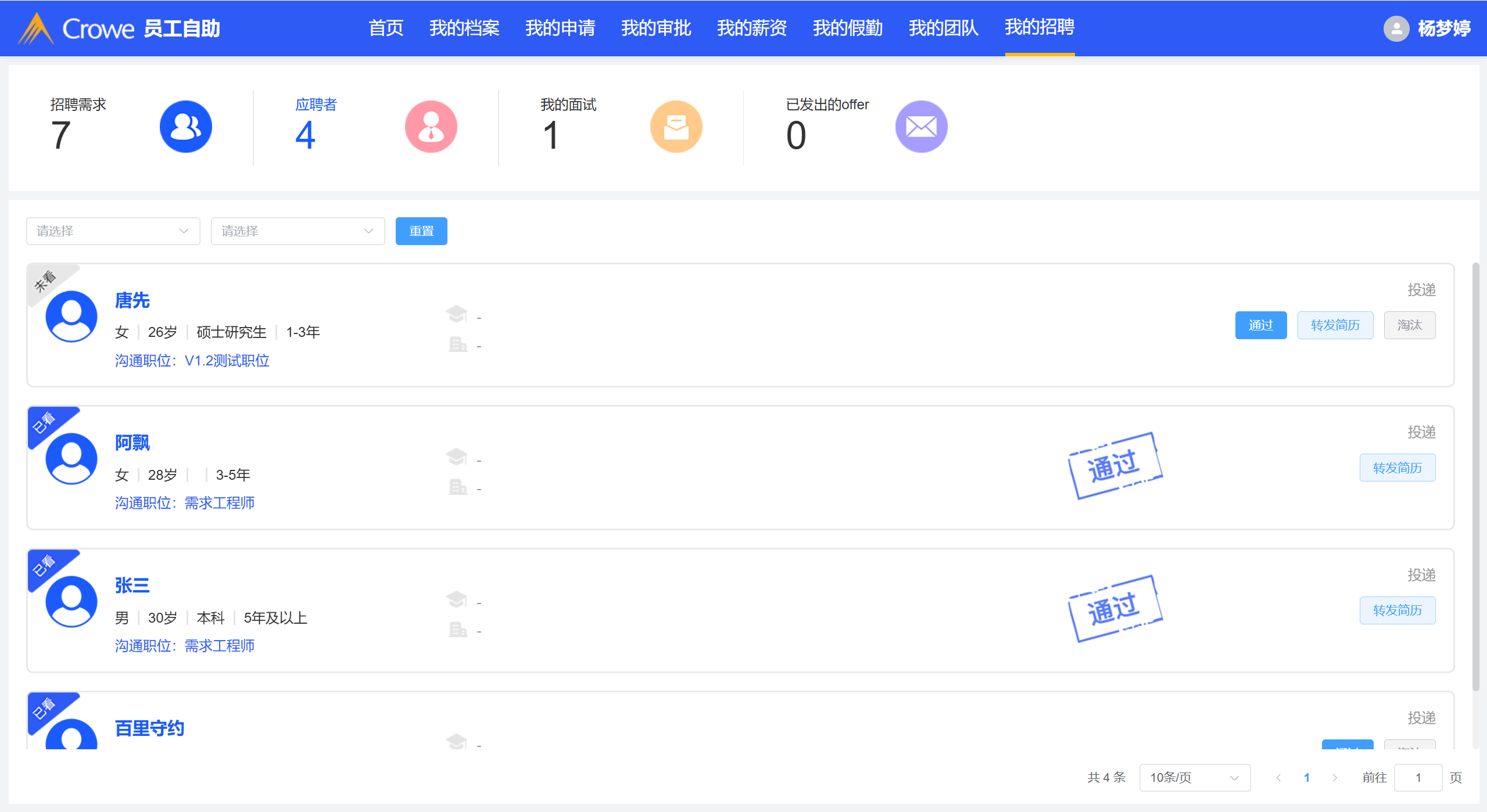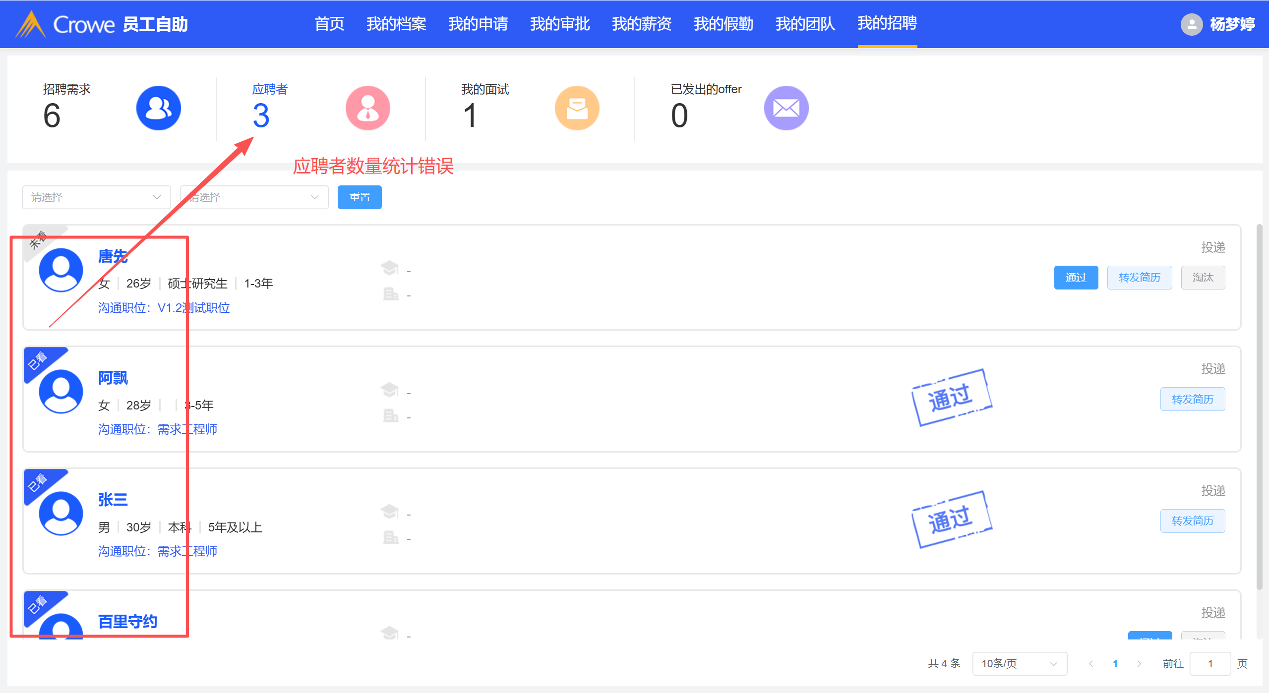 员工自助-应聘者统计数量与列表数据不一致,需要刷新网页