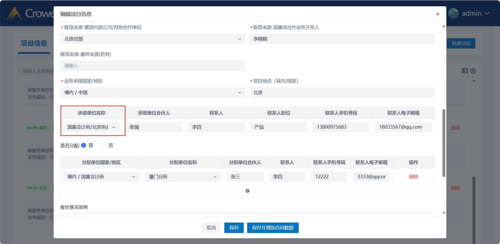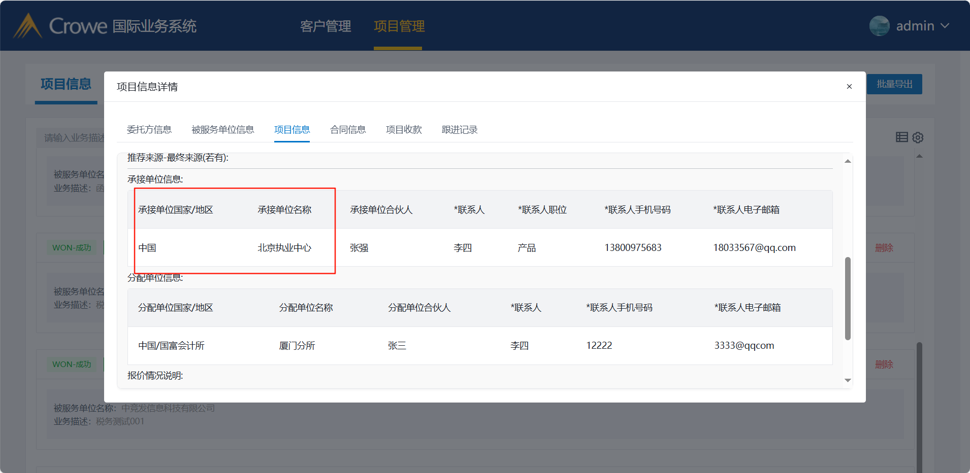 承接单位、分配单位详情展示字段缺失