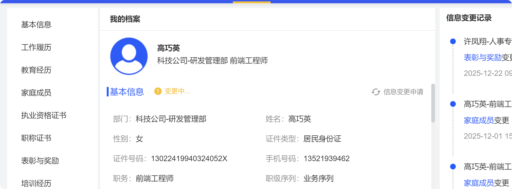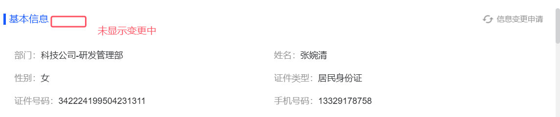 员工自助-我的档案:基本信息变更后未显示变更中