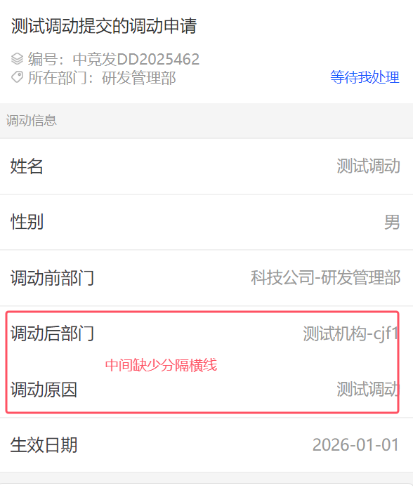 小程序:调动申请,调动后部门和调动原因中间缺少分隔线