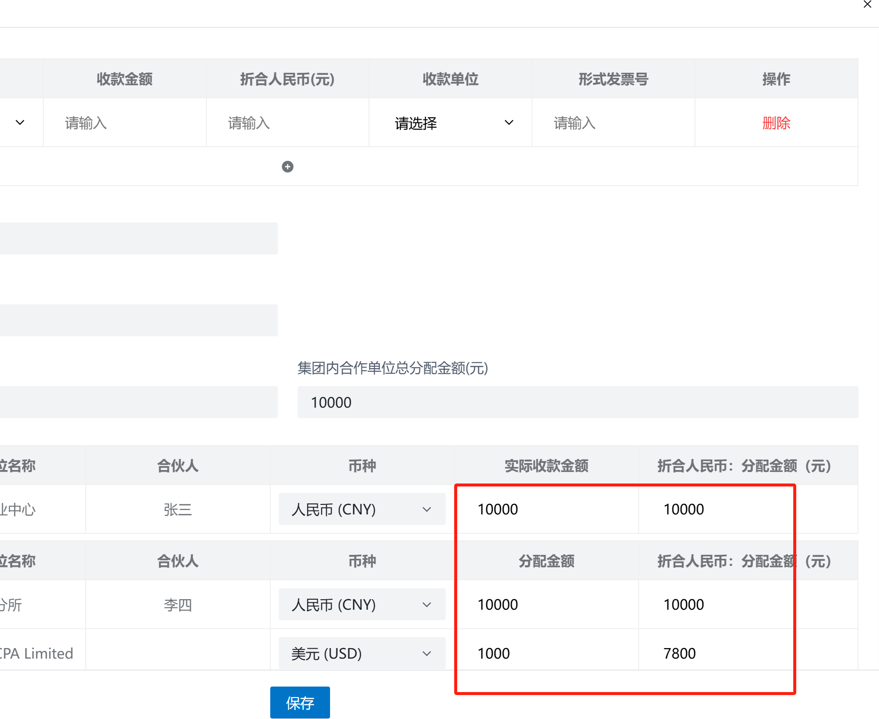 编辑合同后,点击收款,承建单位和分配单位收款金额显示的是合同金额,不是收款金额