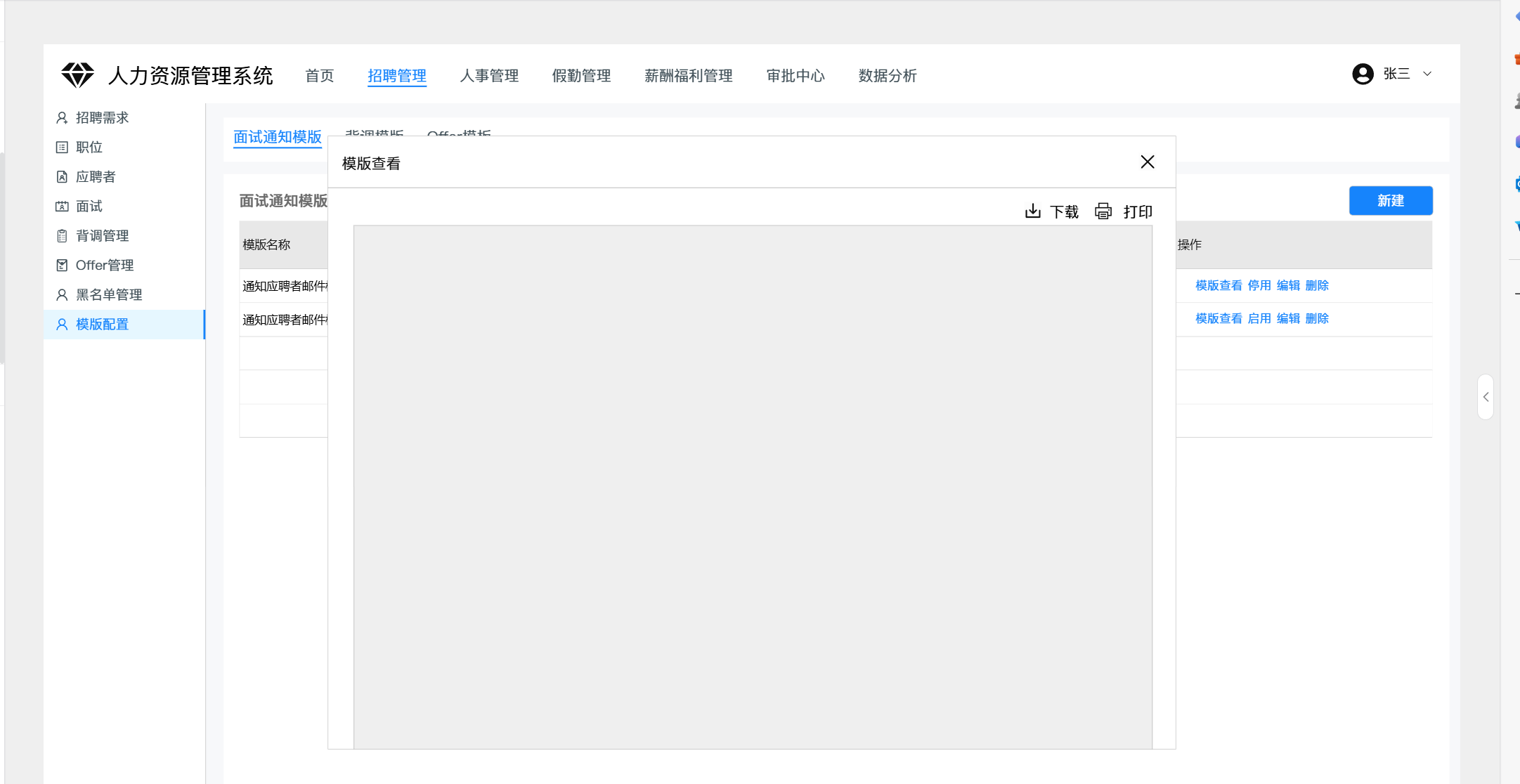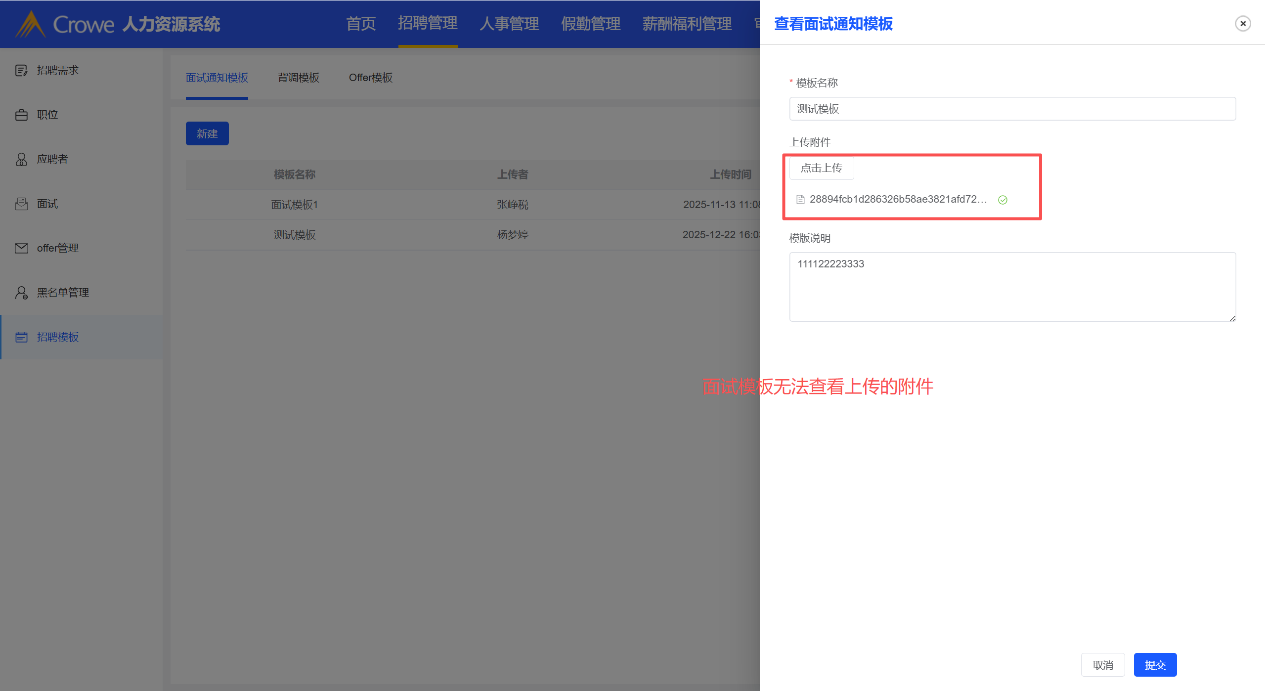 人事模板新建后支持查看上传的附件信息