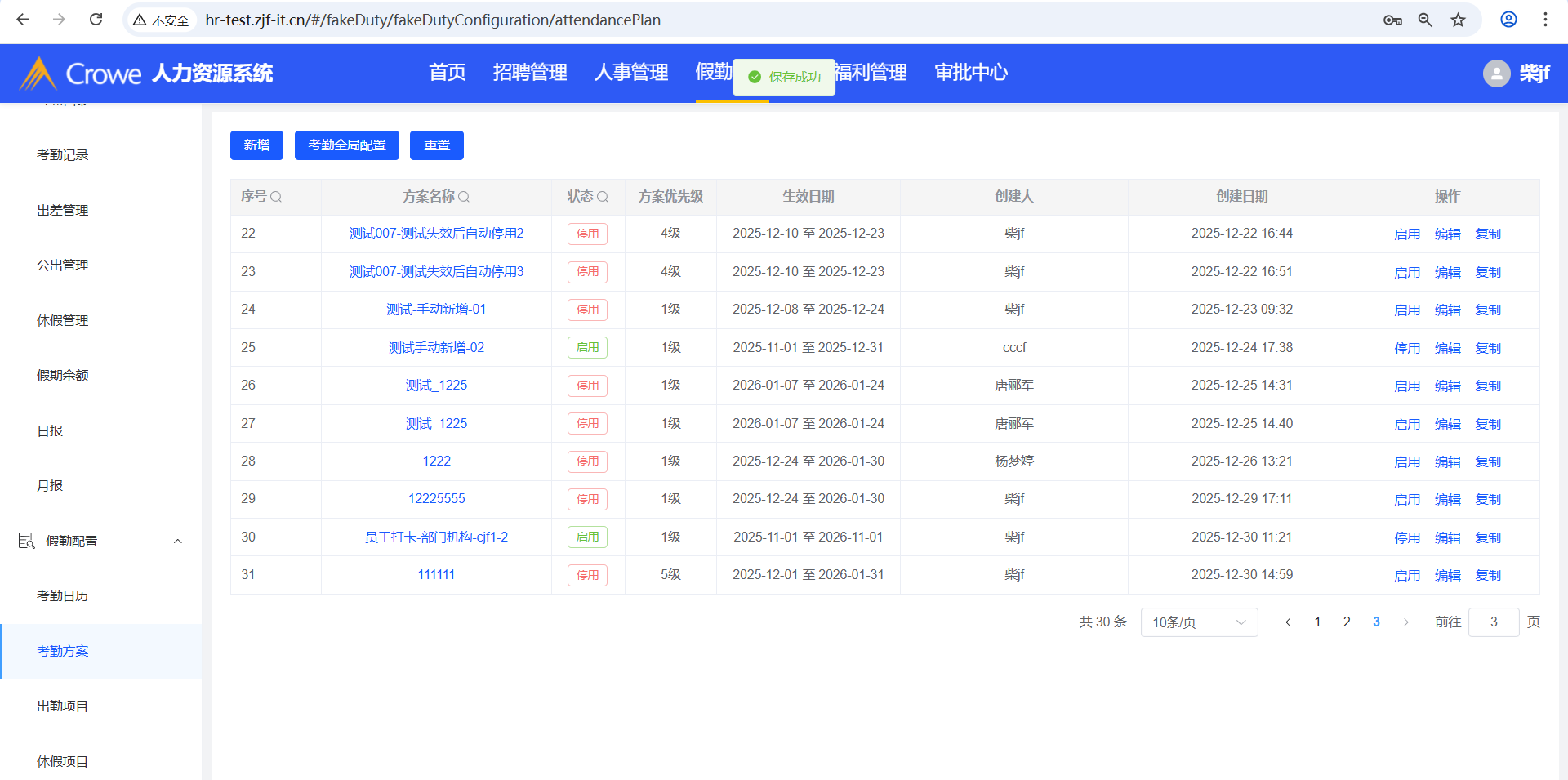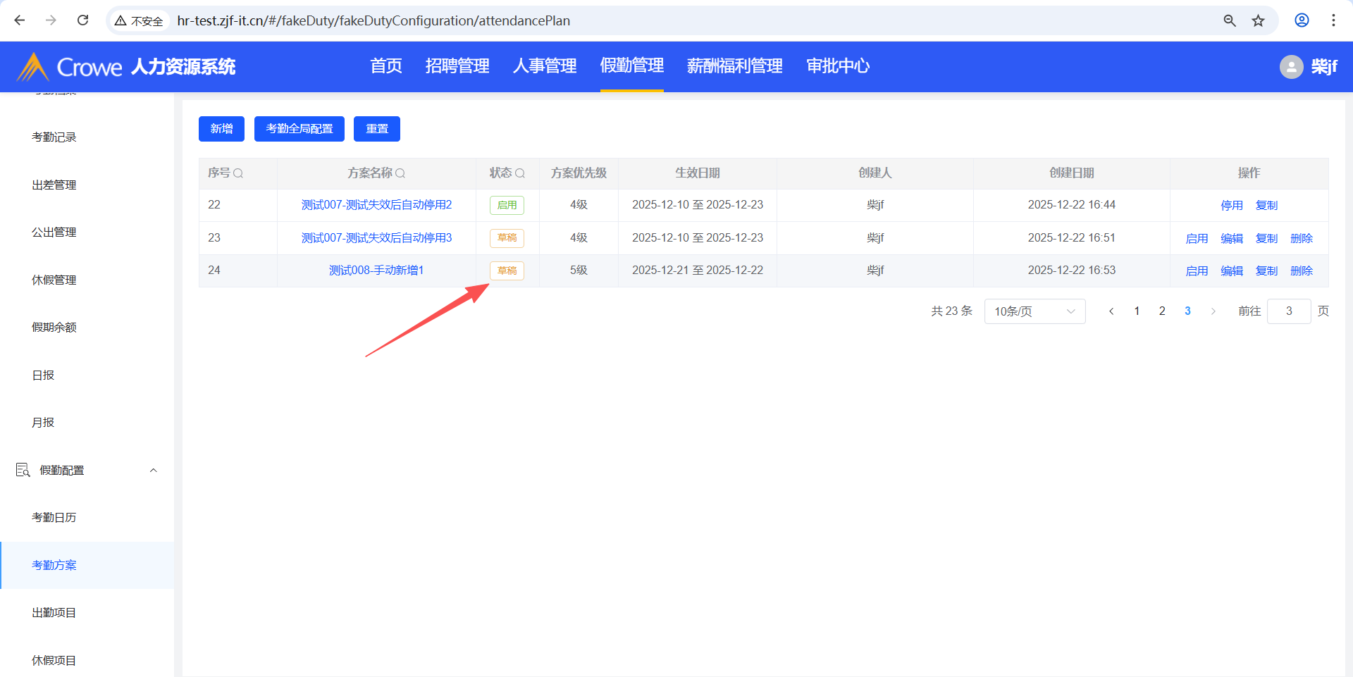 人力资源系统-假勤管理-考勤方案,新增考勤方案,不需要草稿 状态了,状态参考原型V1.2