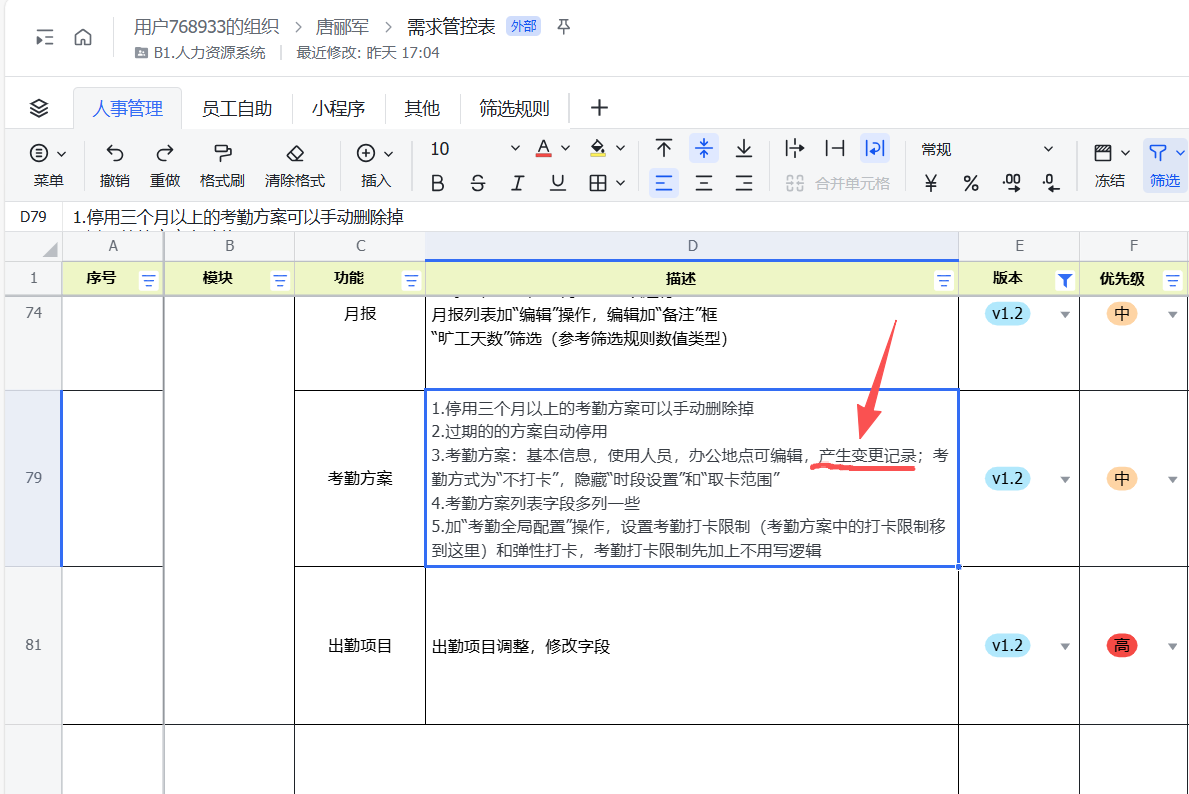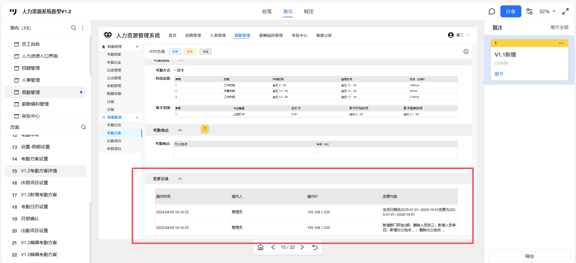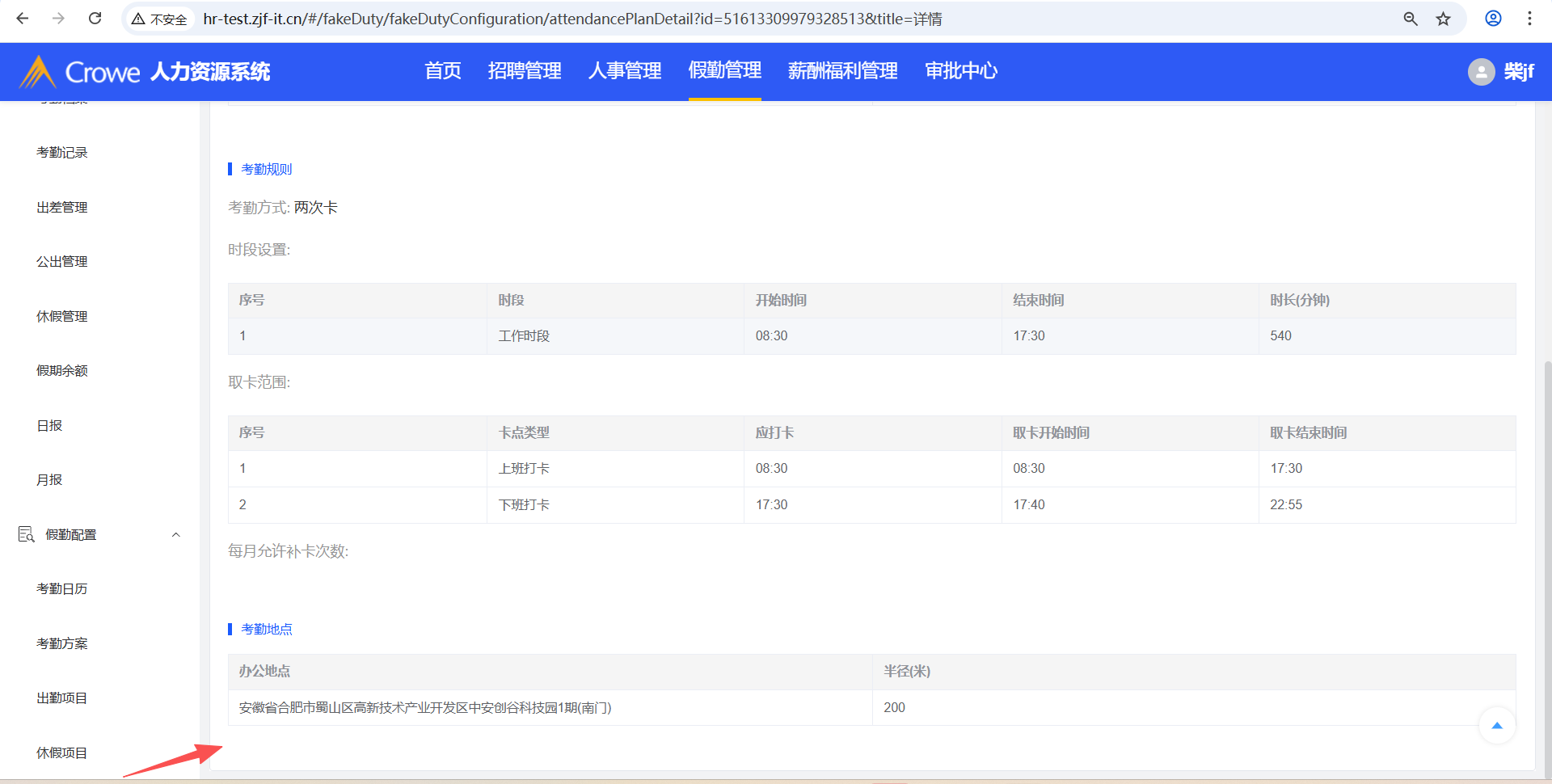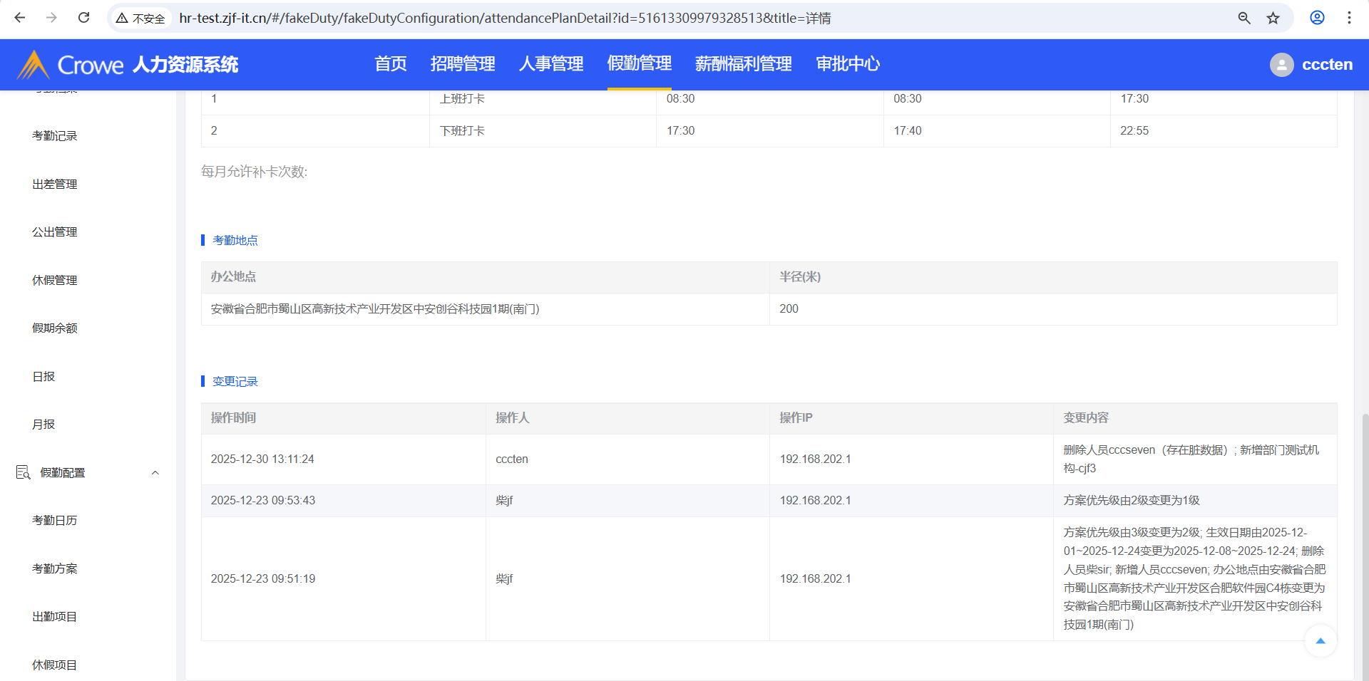 已关闭人力资源系统-假勤管理-考勤方案,编辑考勤方案后,详情里未显示变更记录
