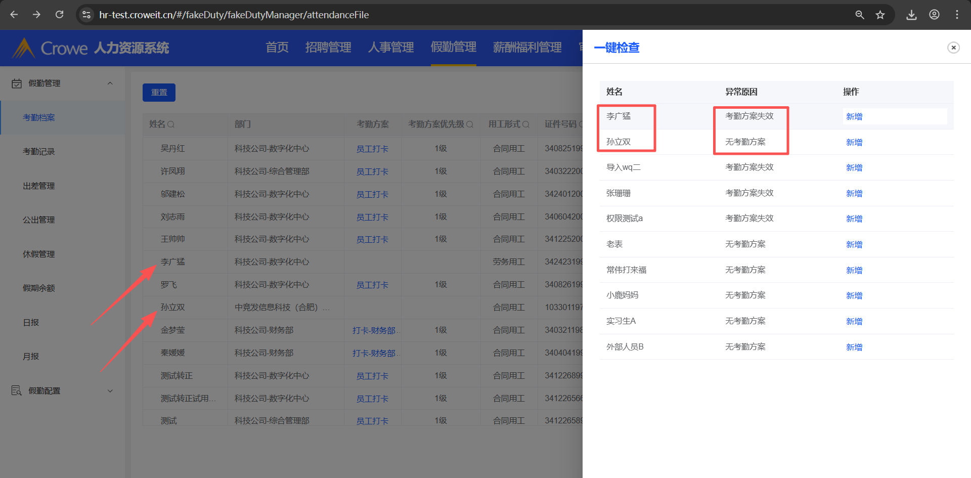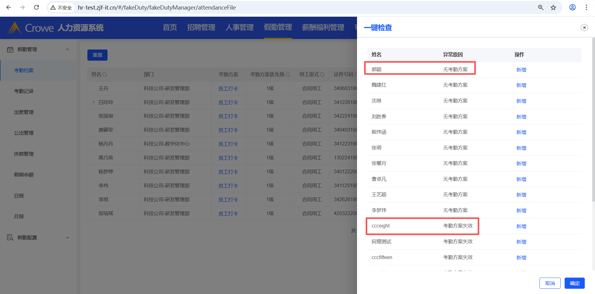 回归测试:没有考勤方案或者考勤方案失效的员工,也要显示在 考勤档案列表,并且只显示一条就行了