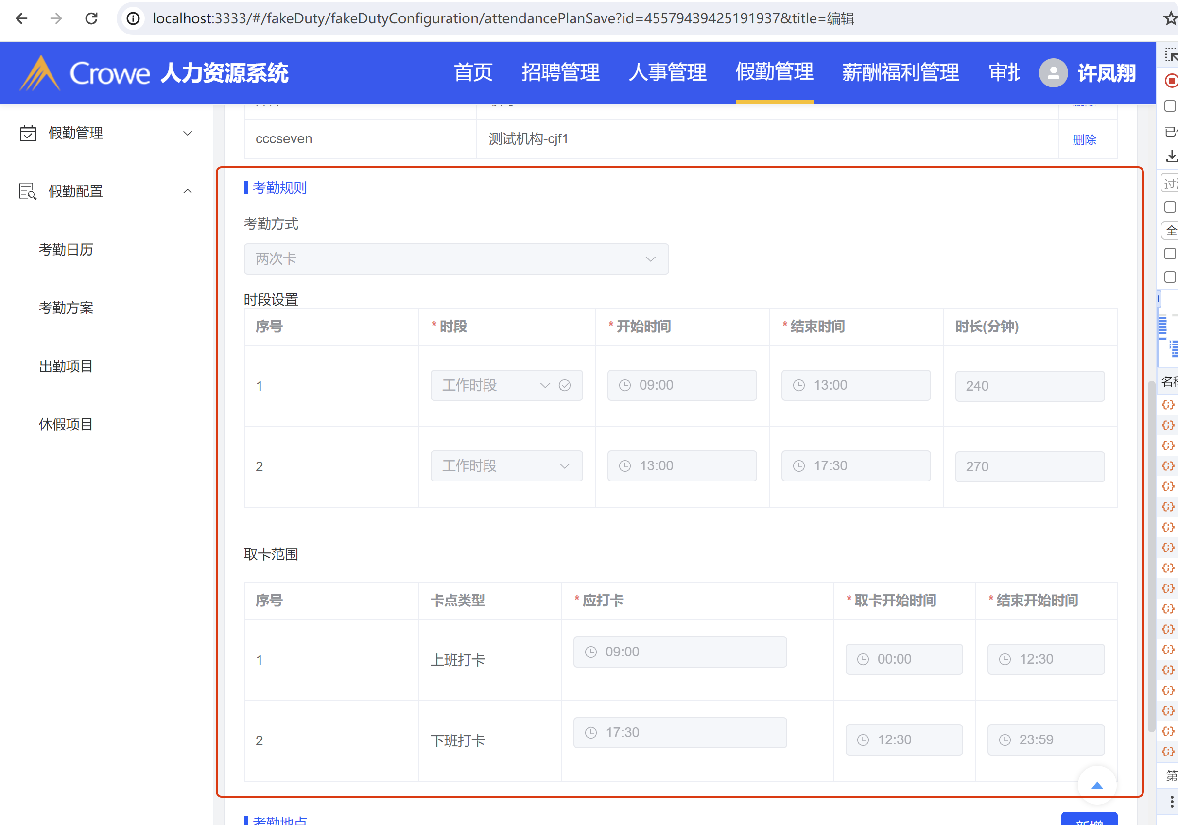 v1.2: 使用人员和考勤规则是不可以编辑的