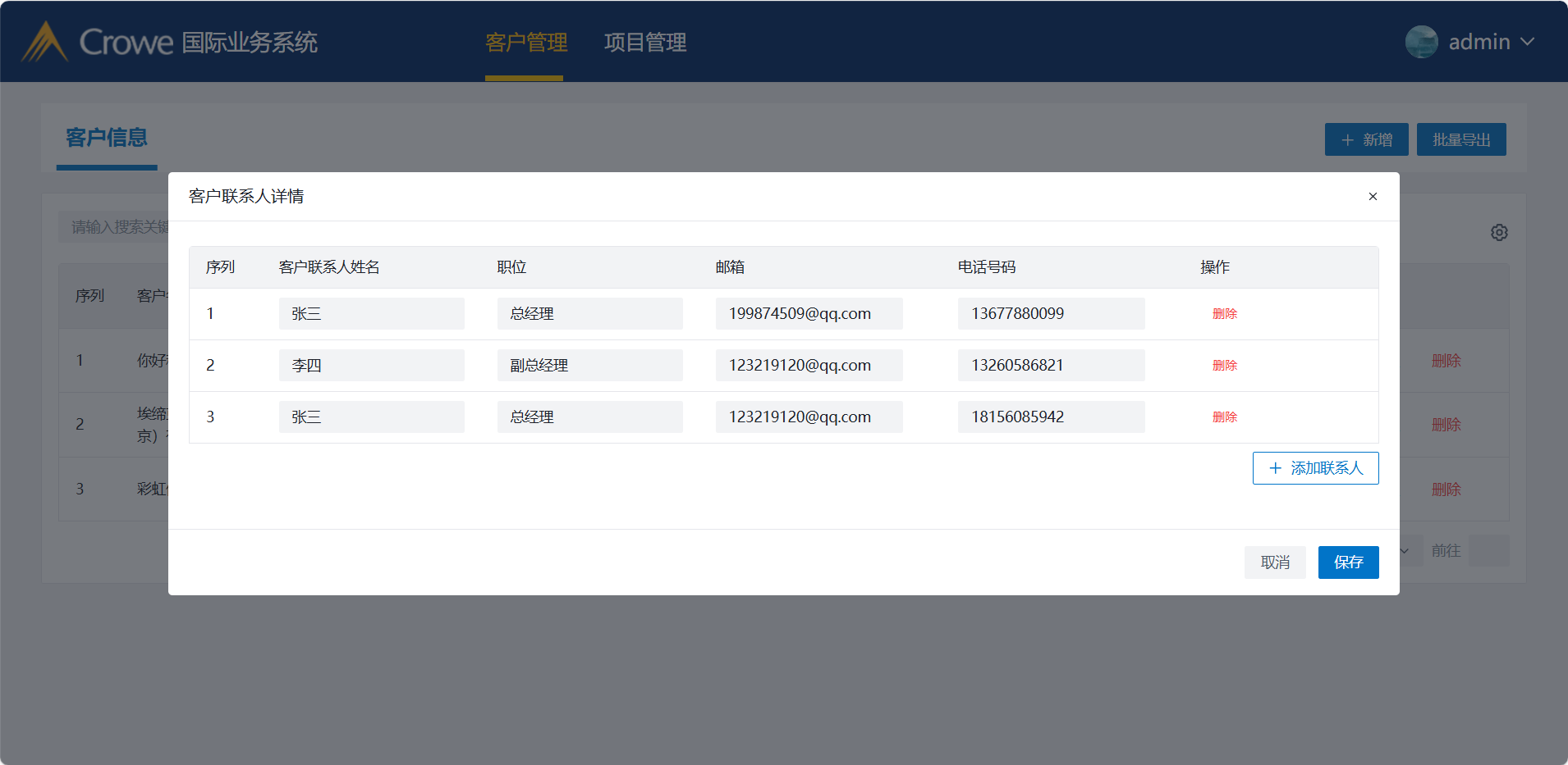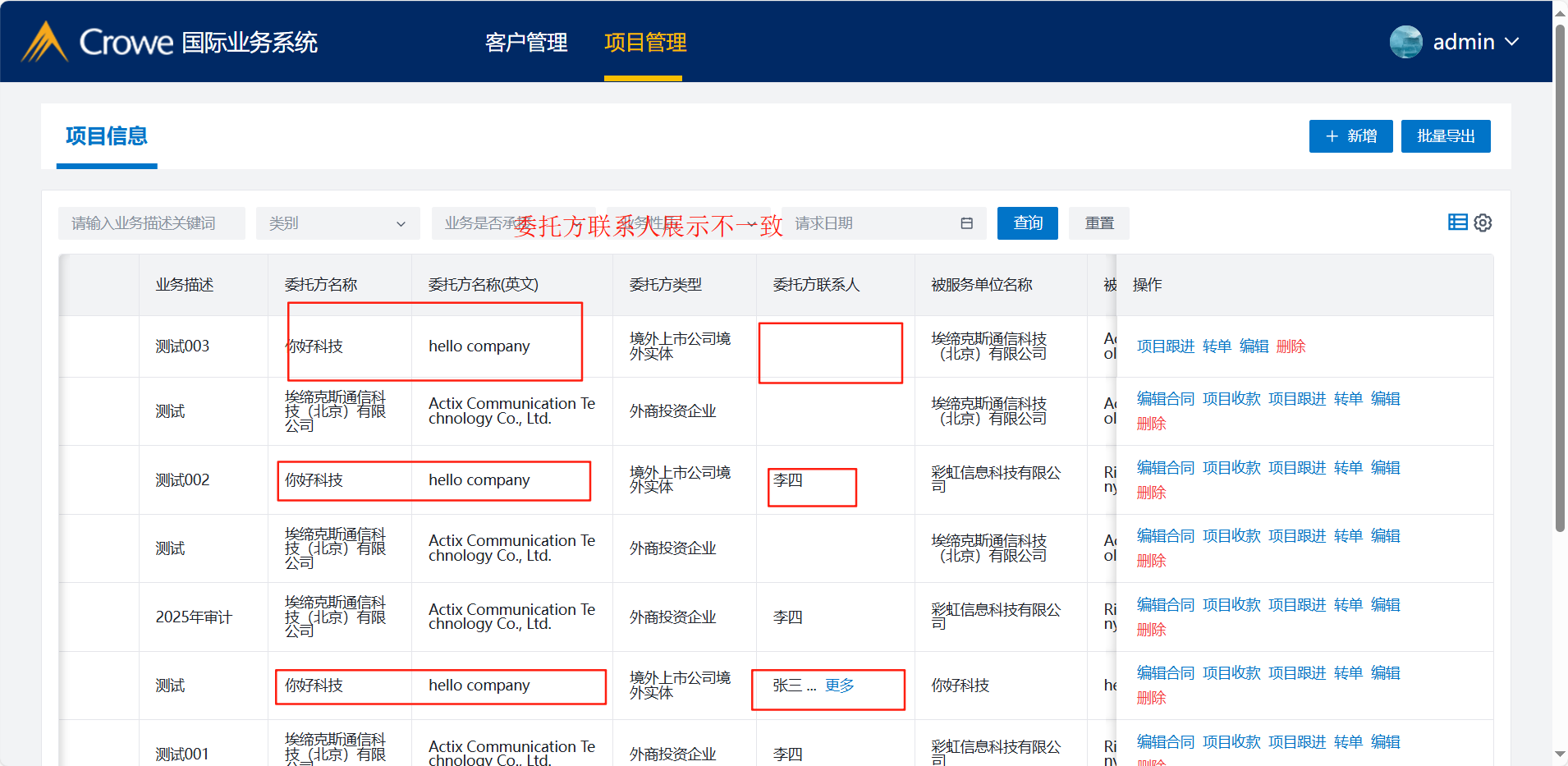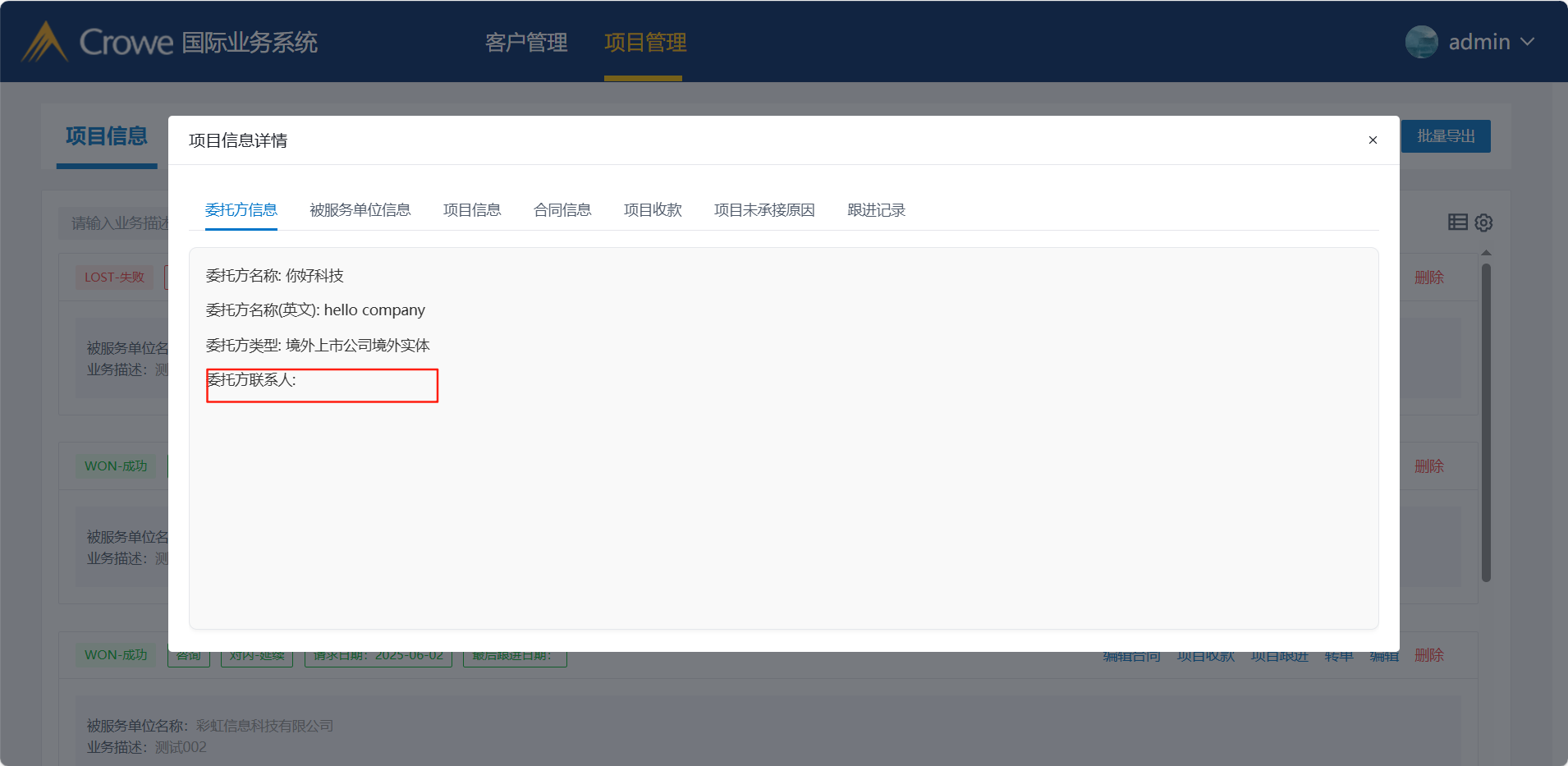 委托方联系人列表以及详情展示有误