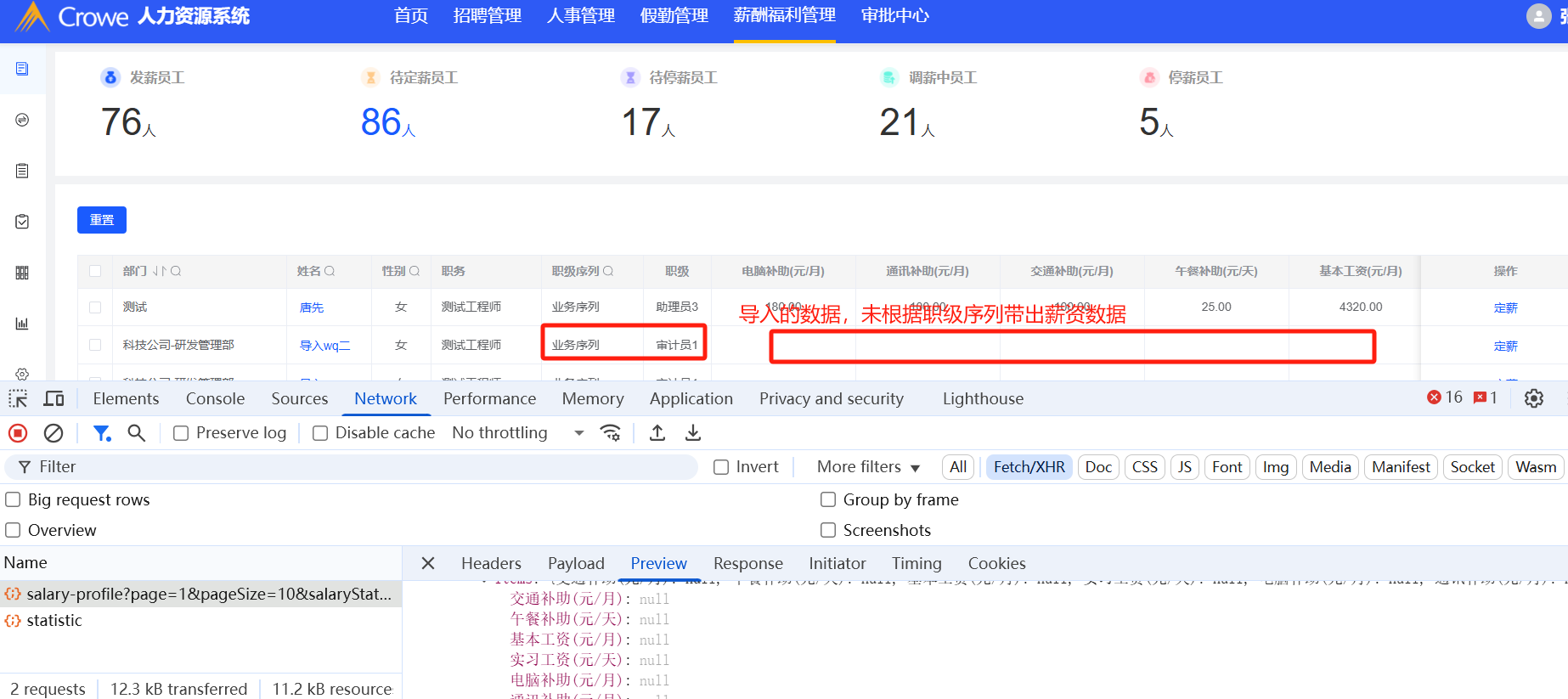薪酬福利管理-薪资档案-待定薪员工:导入的员工,未根据职级带出薪资数据
