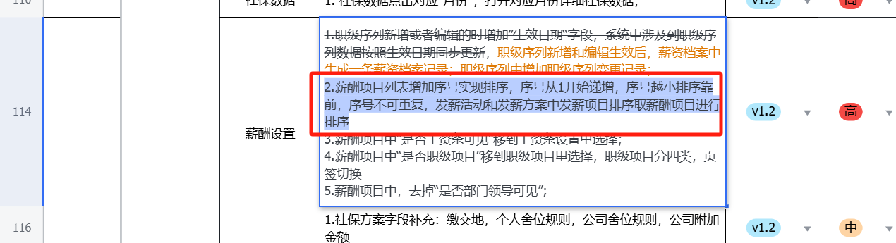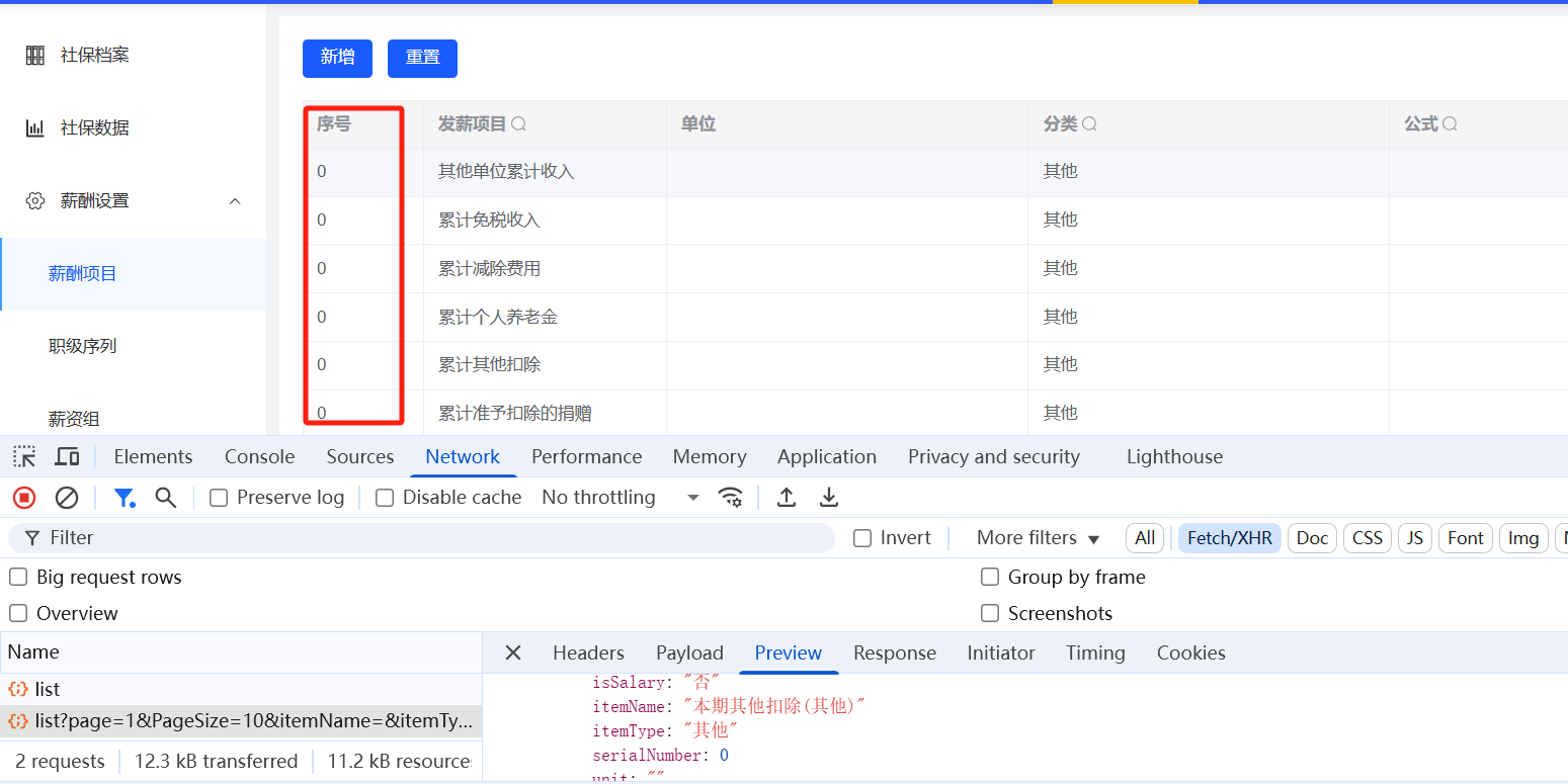 薪酬福利管理-薪酬设置-薪酬项目:序号排序需求未实现,序号未按照从1开始递增