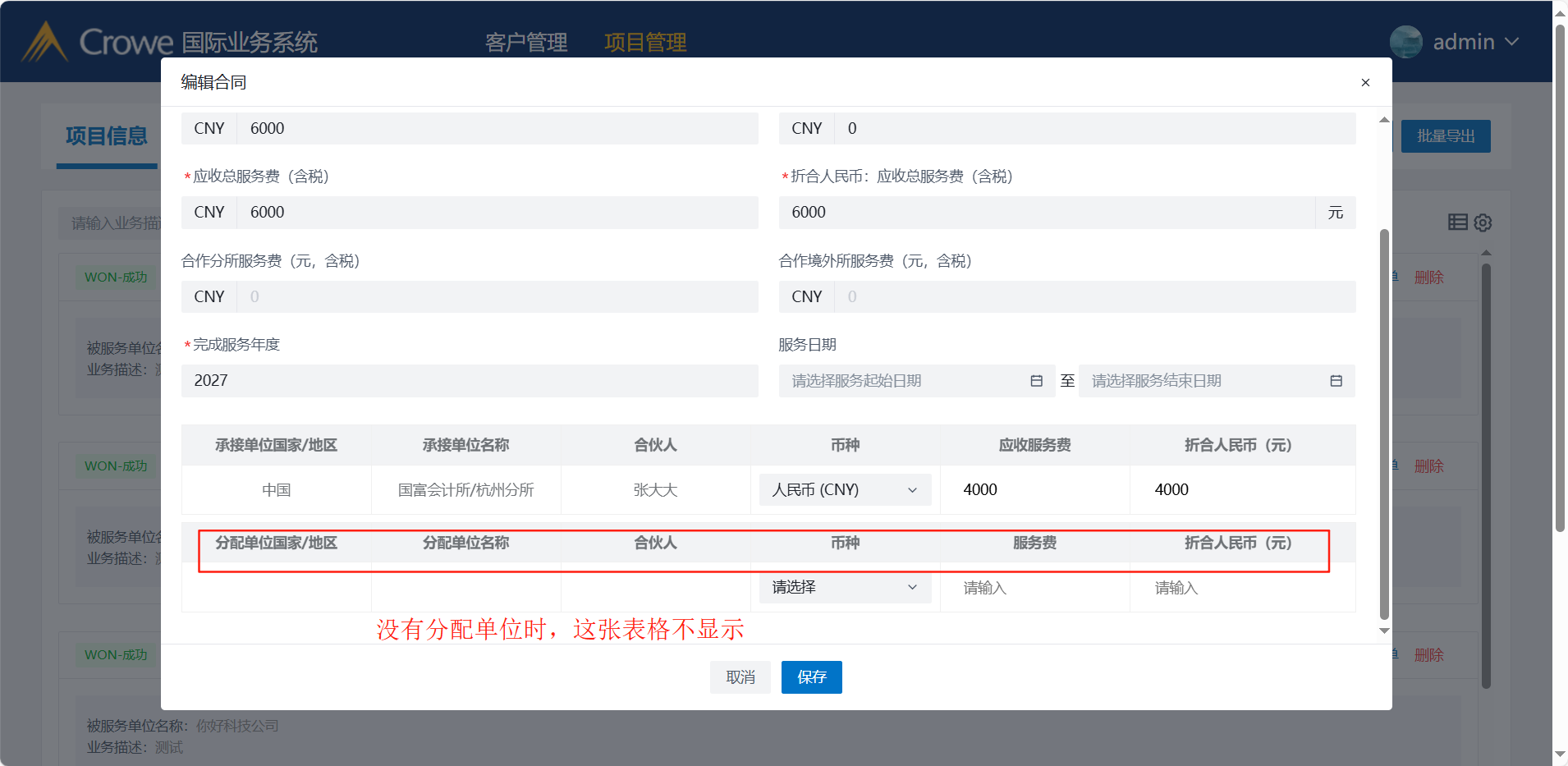 无分配单位时,分配单位表格不显示