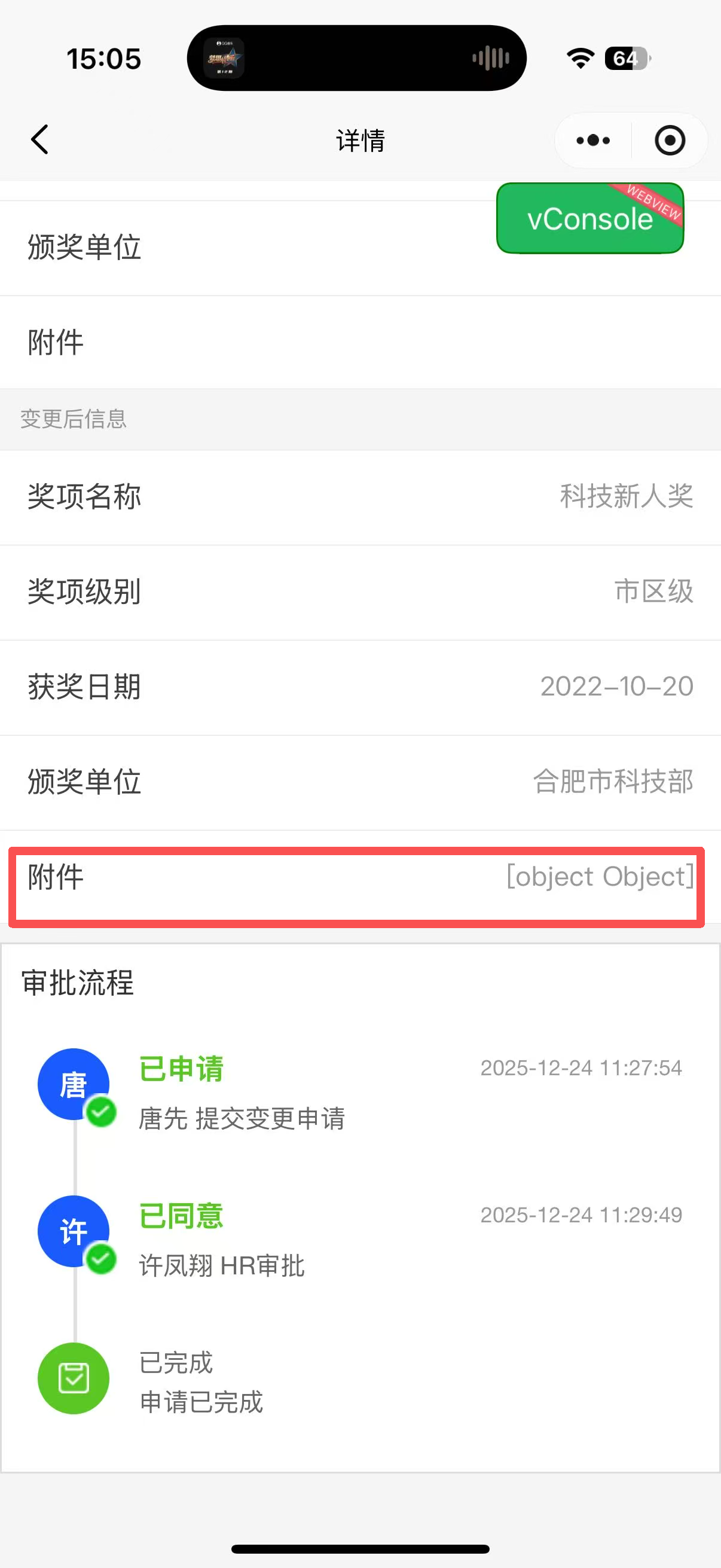 小程序-员工的人员档案变更申请详情中附件展示错误