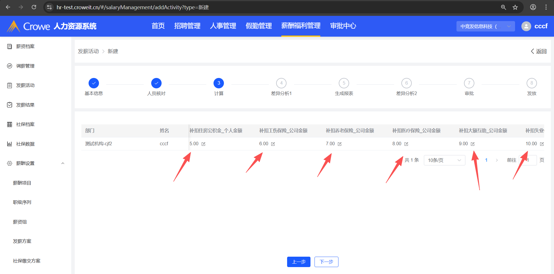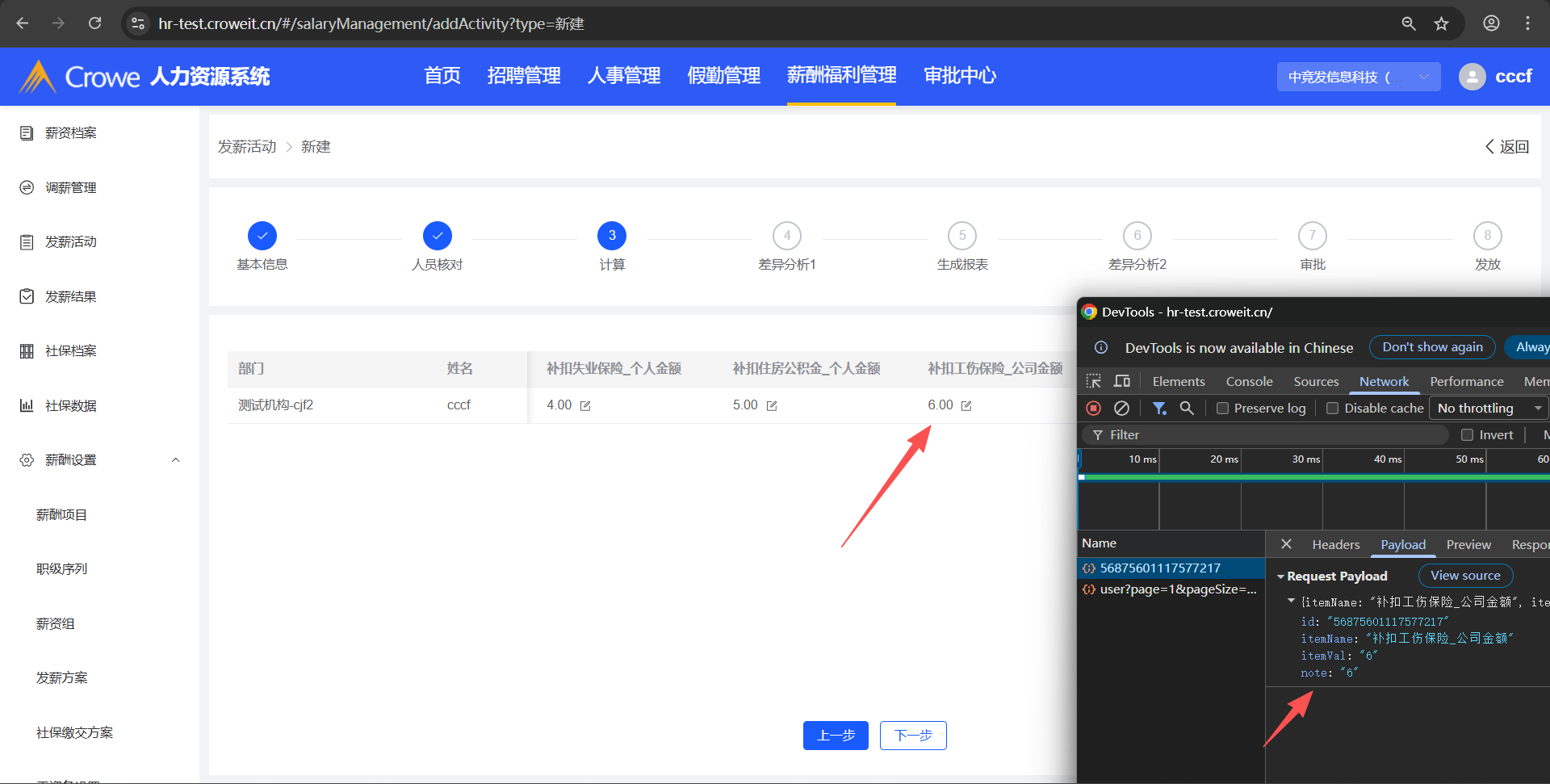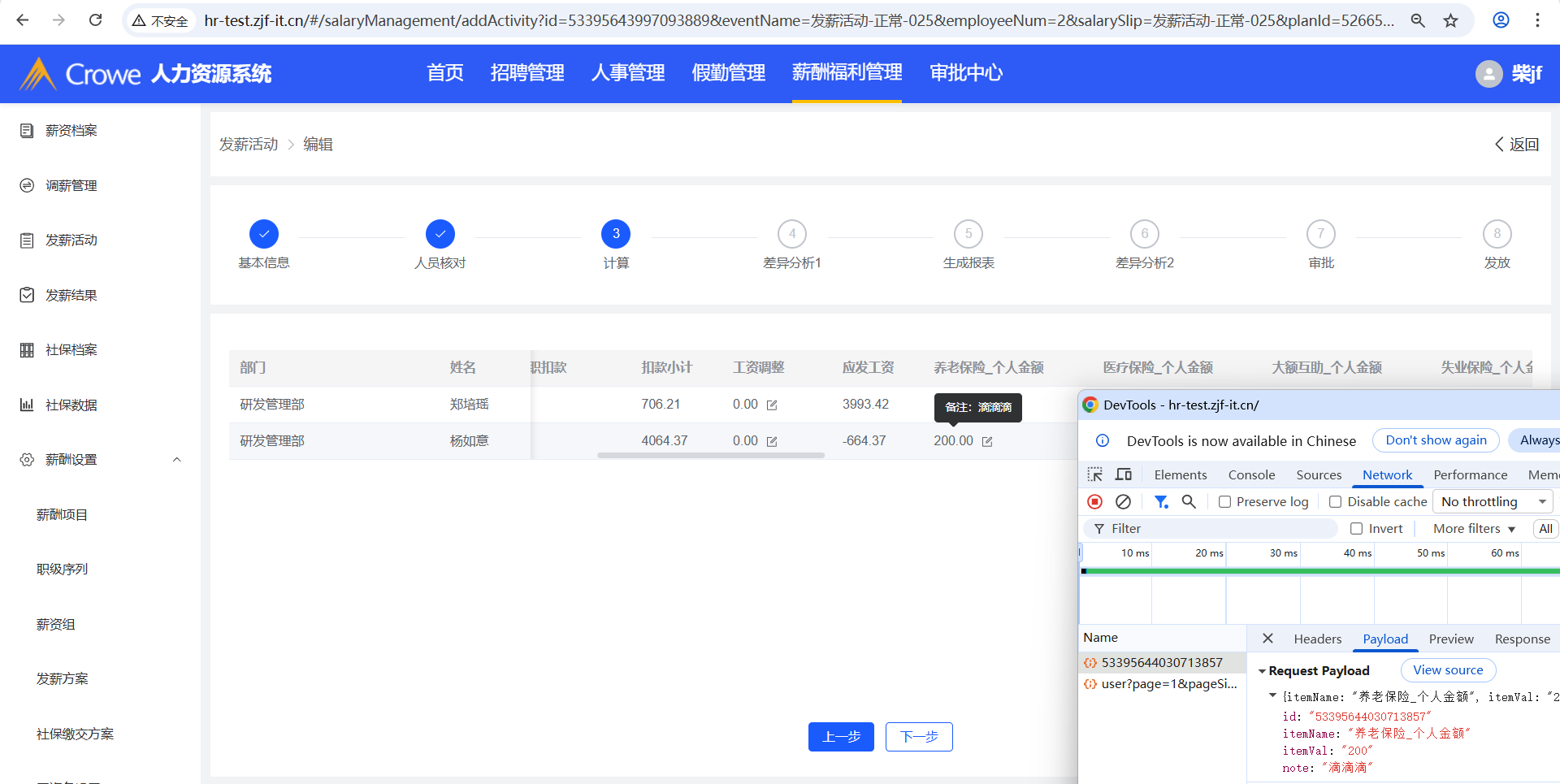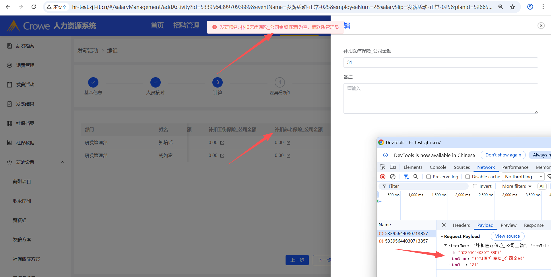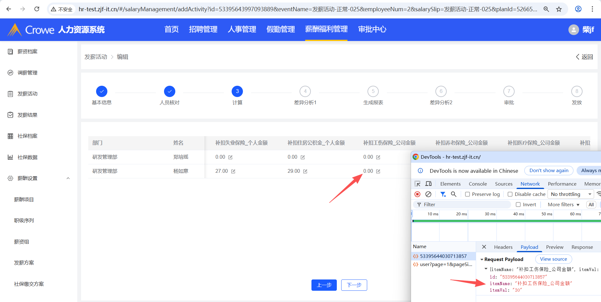 人力资源系统-薪酬福利管理-发薪活动,计算流程,对列表字段数值不为0的编辑,未修改成功